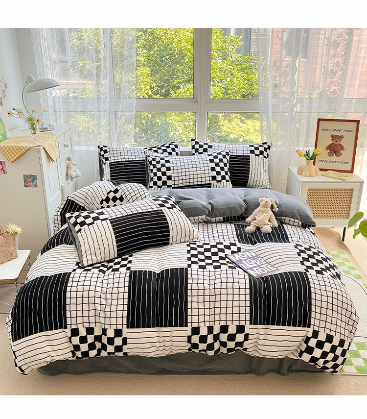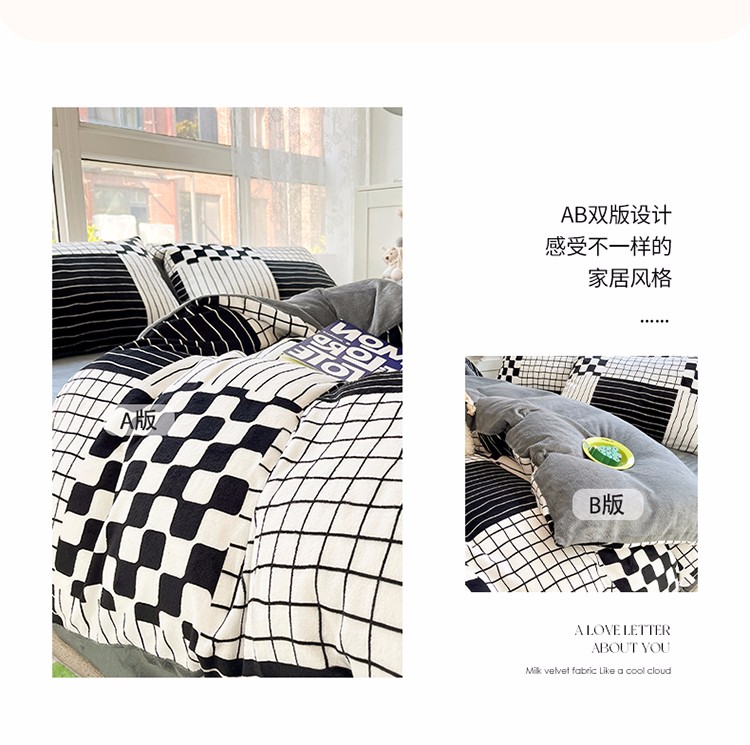 雅居纺 2022新款牛奶绒印花四件套 四宫格