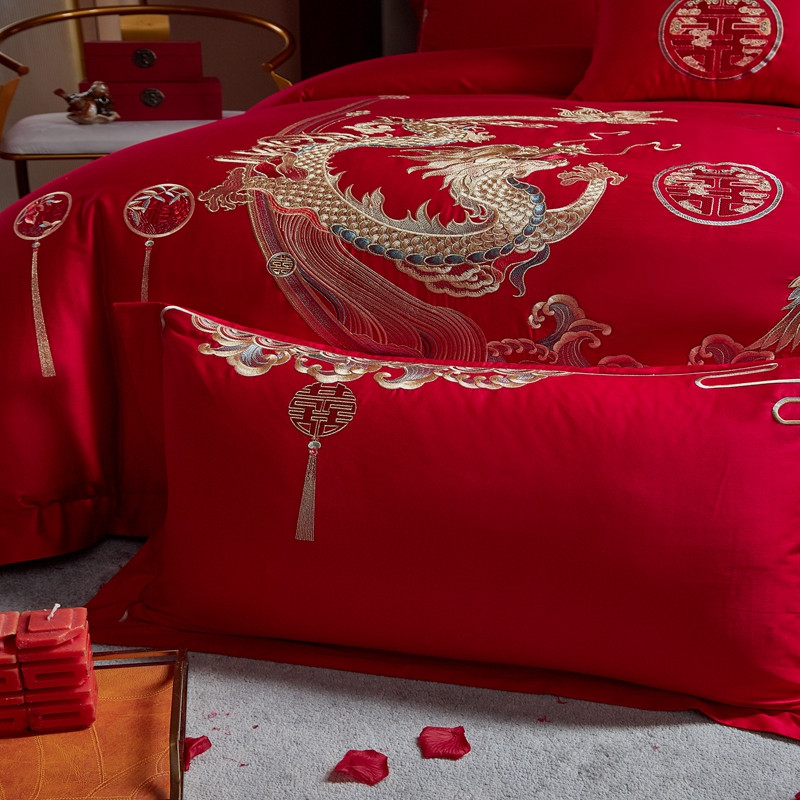 高大尚婚庆馆 2025新款长绒棉囍嫁系列婚庆四件套 格调,格调