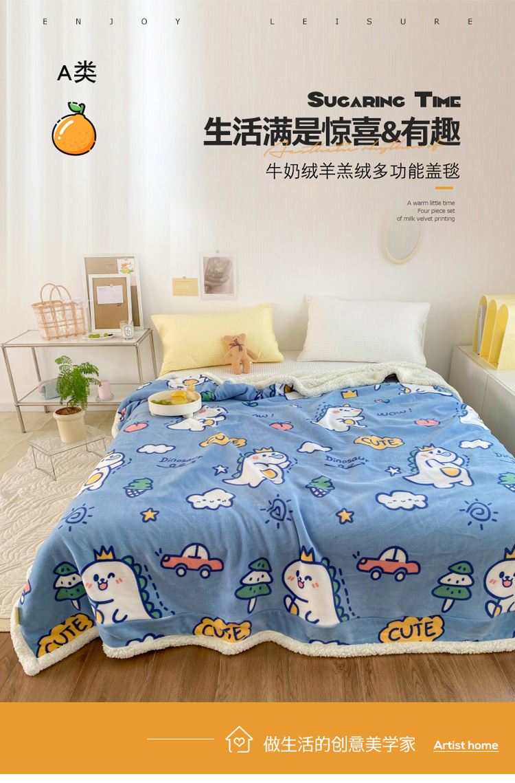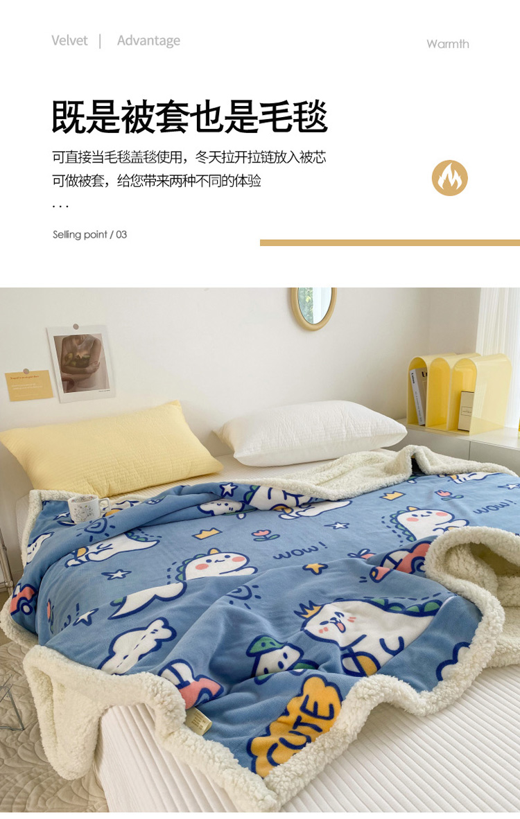 商品名称:寐居 2022新款牛奶绒羊羔绒被套两用多功能盖毯 恐龙家族