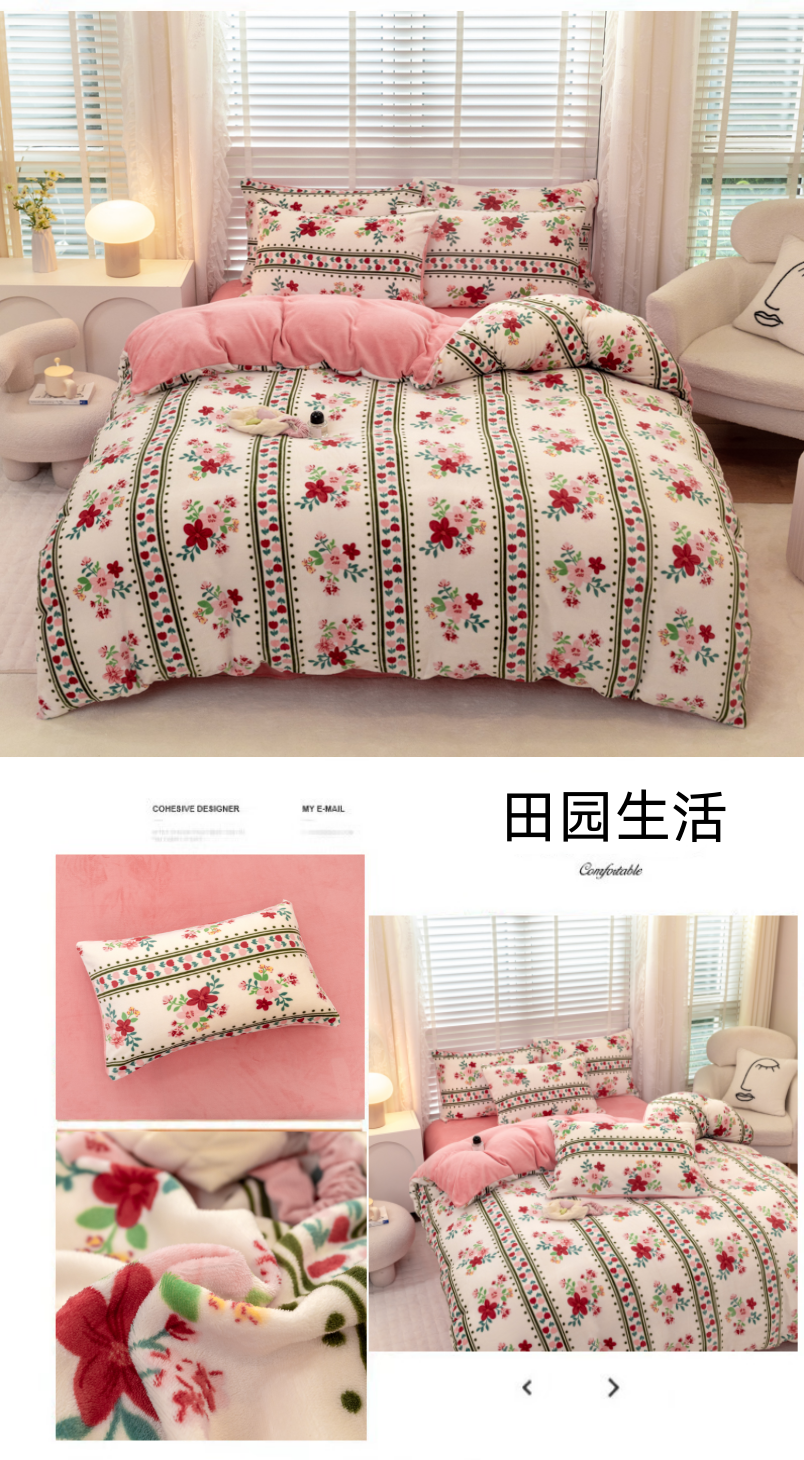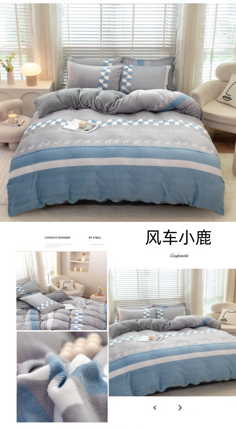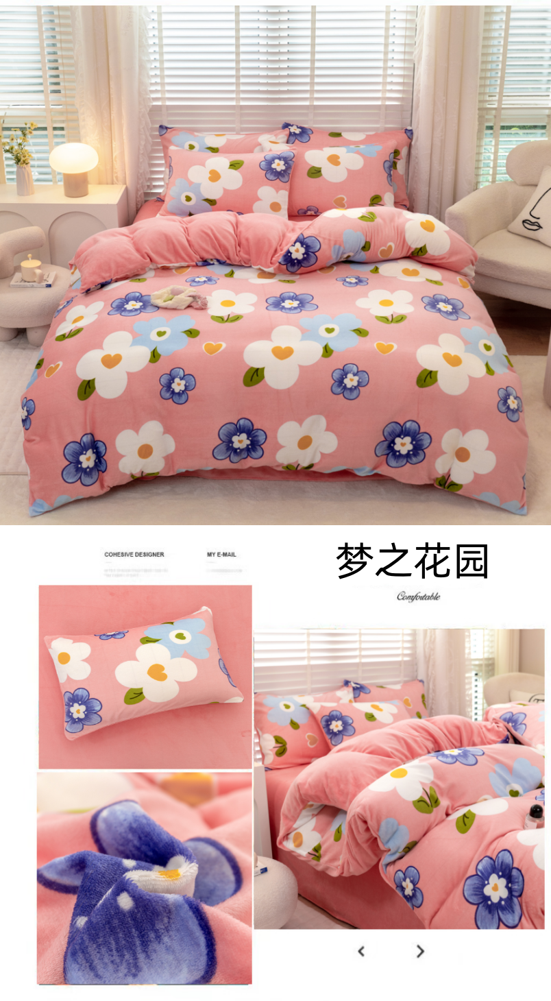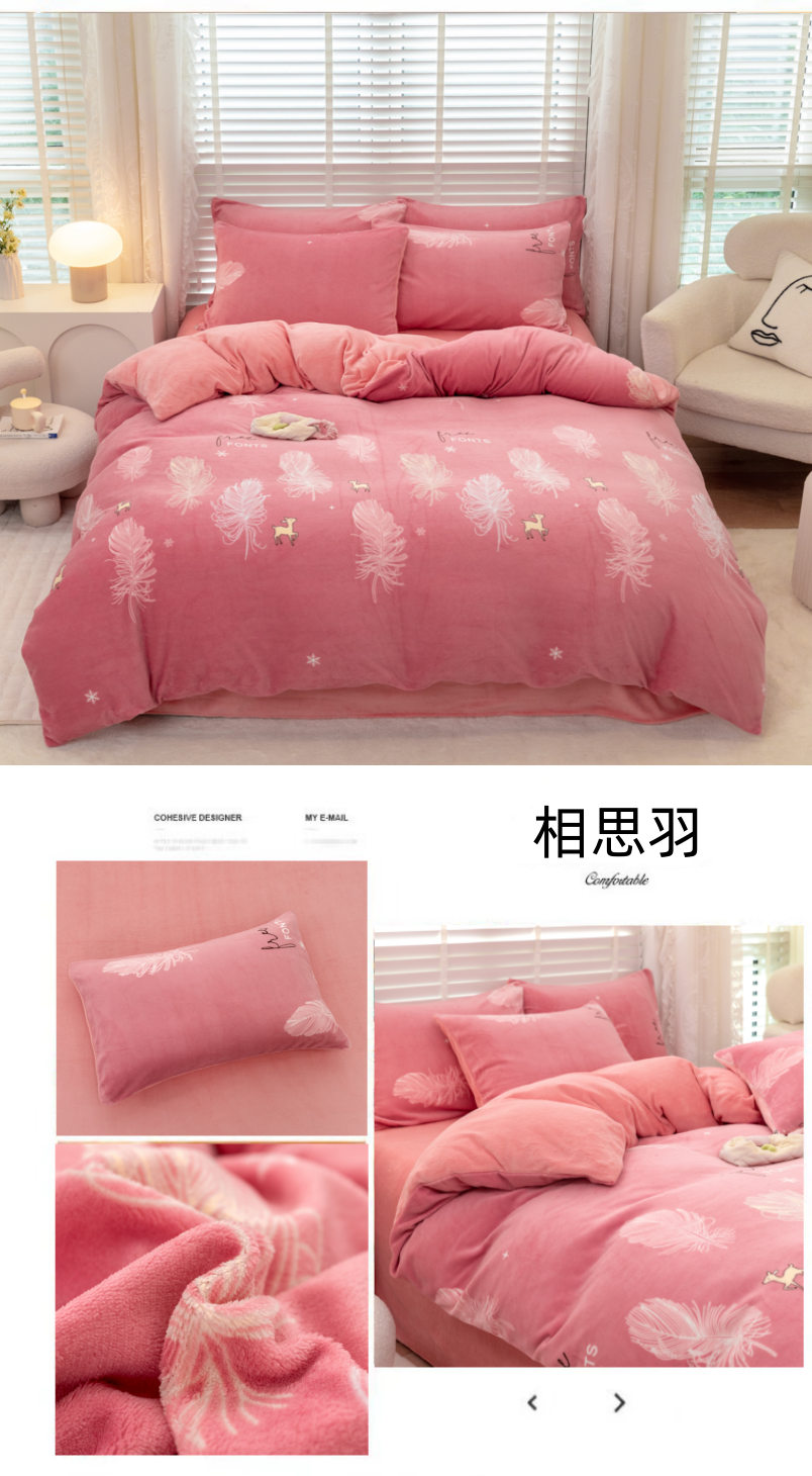 (总)鸿羽樱2024新款纯色印花牛奶绒四件套
