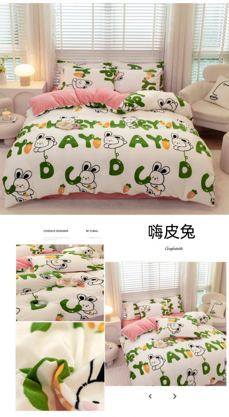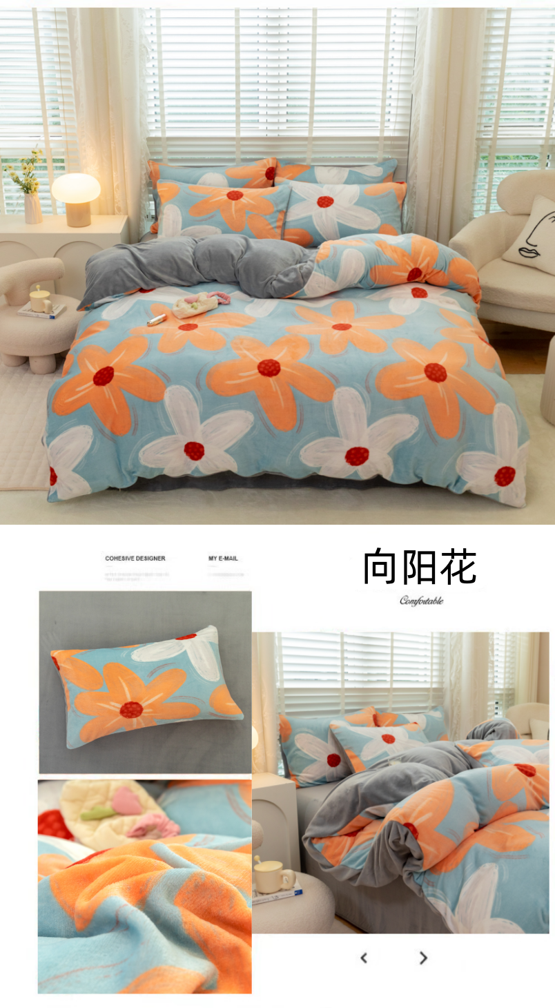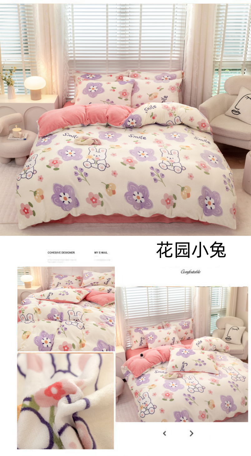 (总)鸿羽樱2024新款纯色印花牛奶绒四件套