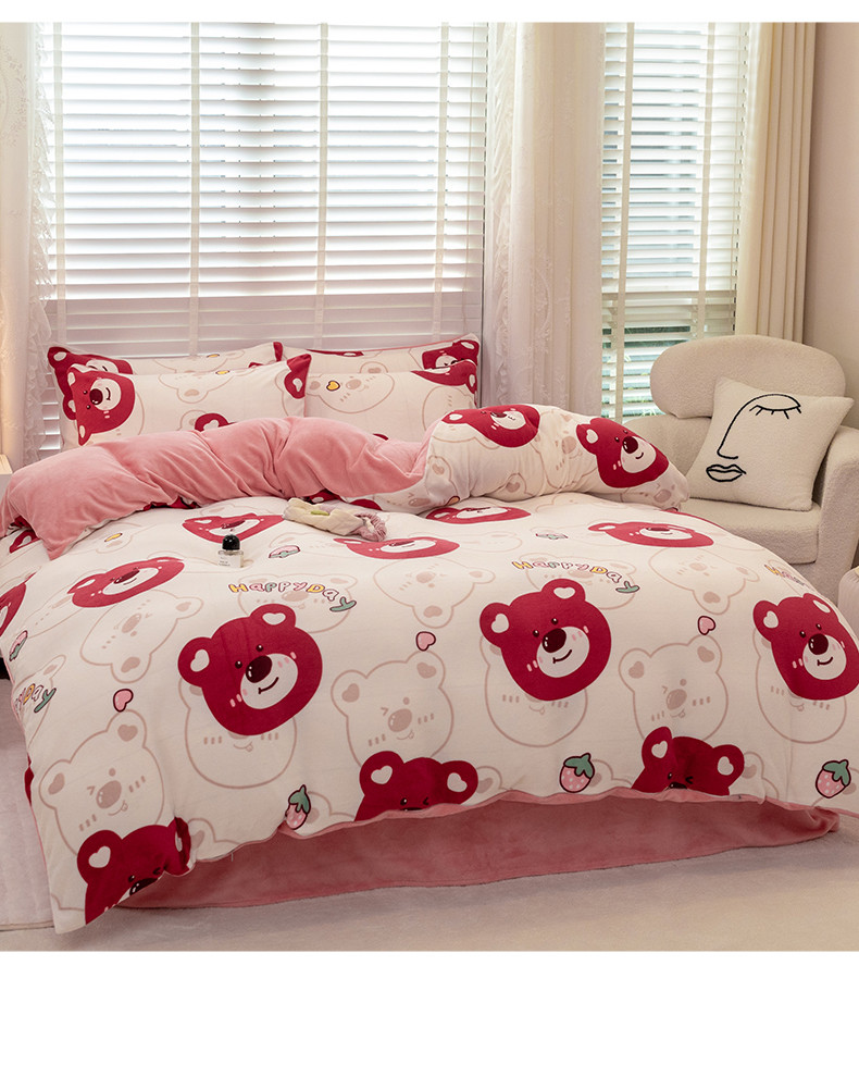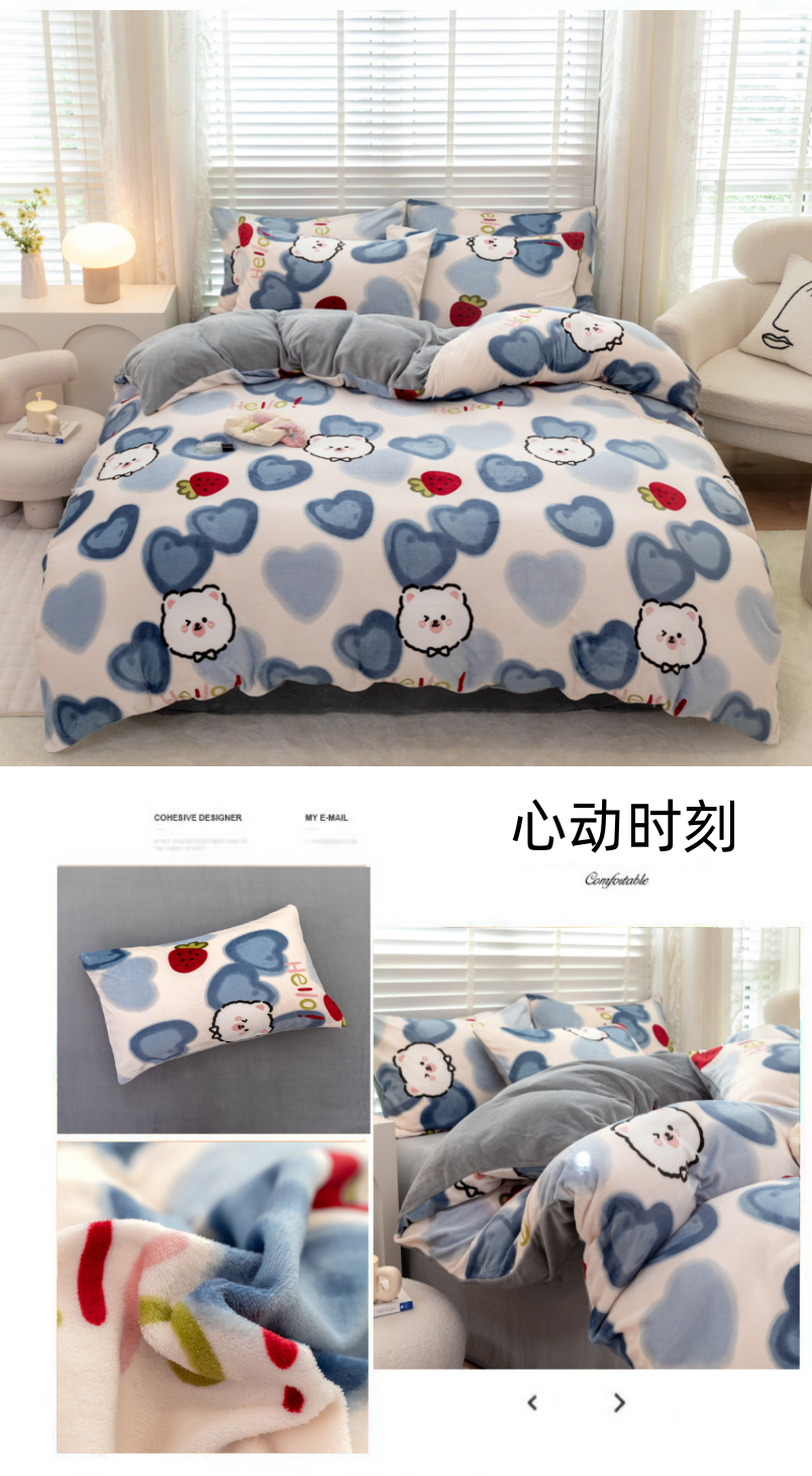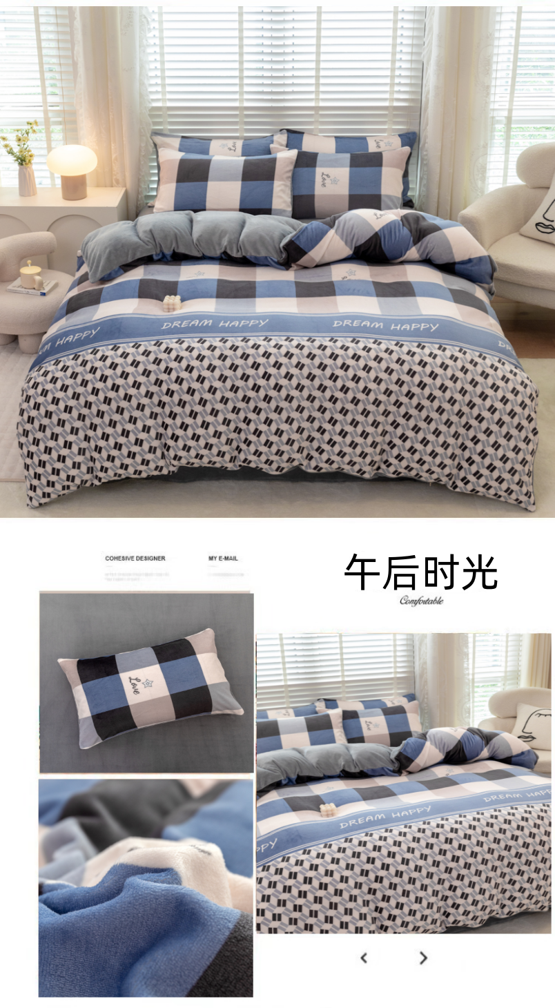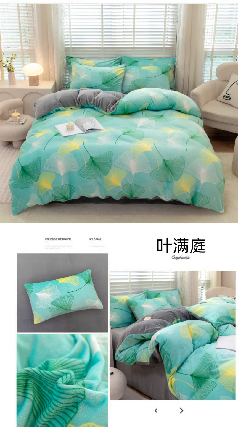 (总)鸿羽樱2024新款纯色印花牛奶绒四件套