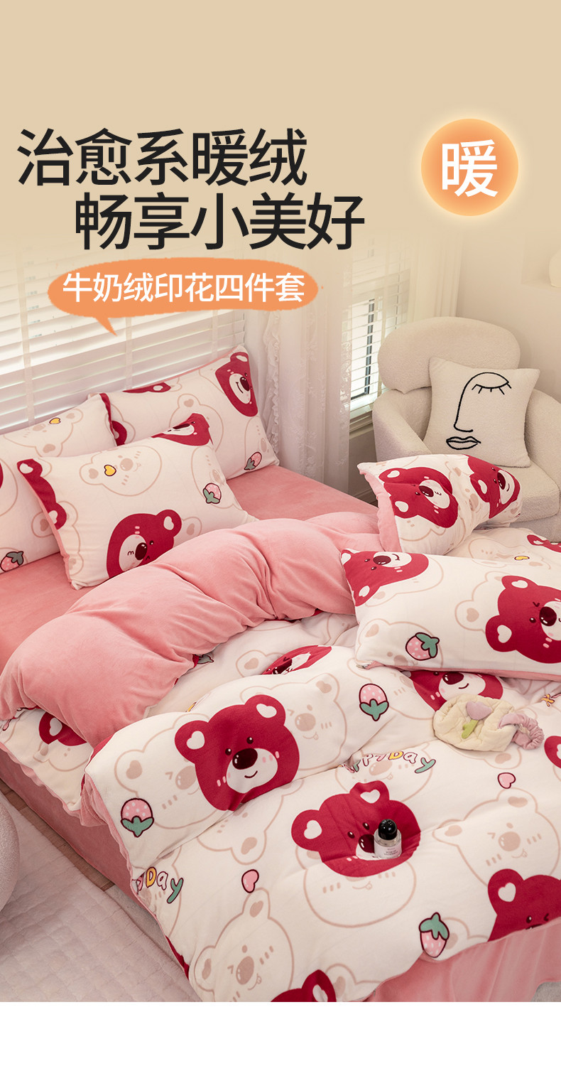 (总)鸿羽樱家纺《原伊菲晓》 2025新款小清新牛奶绒印花四件套,爱心彩虹,安妮兔,安睡贝贝,遨游太空,巴黎时尚,草莓派,草莓熊,春风时节,粉郁金,富贵牡丹-粉,富贵牡丹-紫,花束,假日心情,金叶飘香,精灵爱心,蓝莓小熊,浪漫花语,玫瑰情,梦太空,倾城花语-灰,倾城花语-绿,时光向暖-兰,时光向暖-绿,甜蜜精灵,甜蜜樱桃,心有灵犀,熊格格,萱花,一叶菩提,银杏落叶,羽毛束花,郁金香,竹子小熊,宝石蓝+灰,灰色,典雅绿+灰,粉色+灰,天空蓝+灰