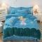 商品名称:优姿家纺 牛奶绒贴边绣花荷叶花边保暖四件 守护甜心-蓝