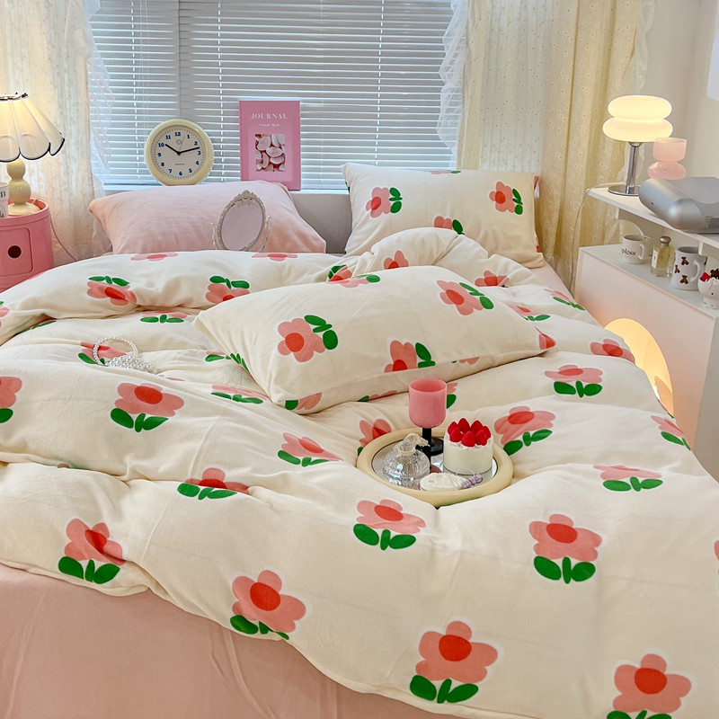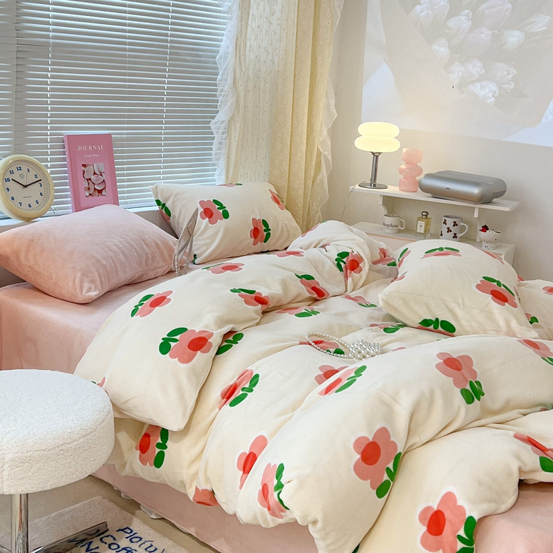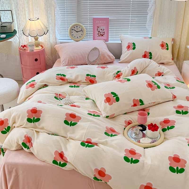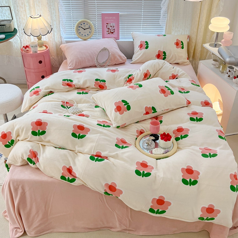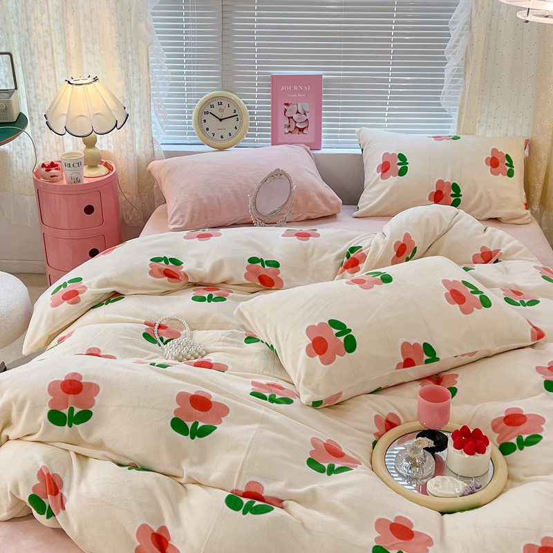 昔可 2022新款牛奶绒四件套花朵系列 小红花
