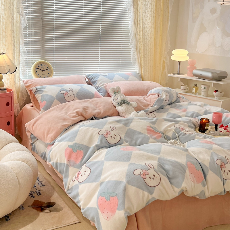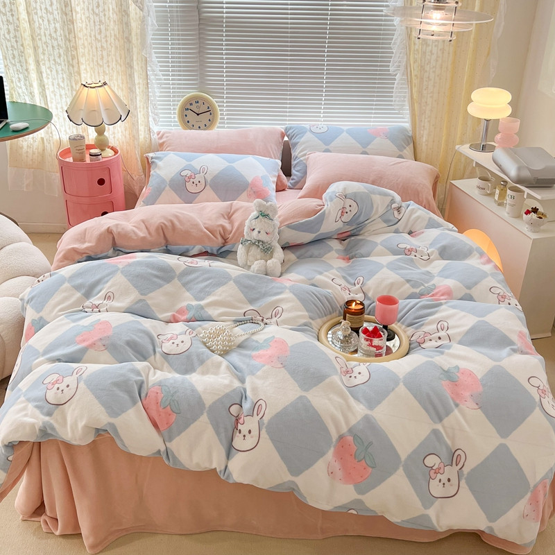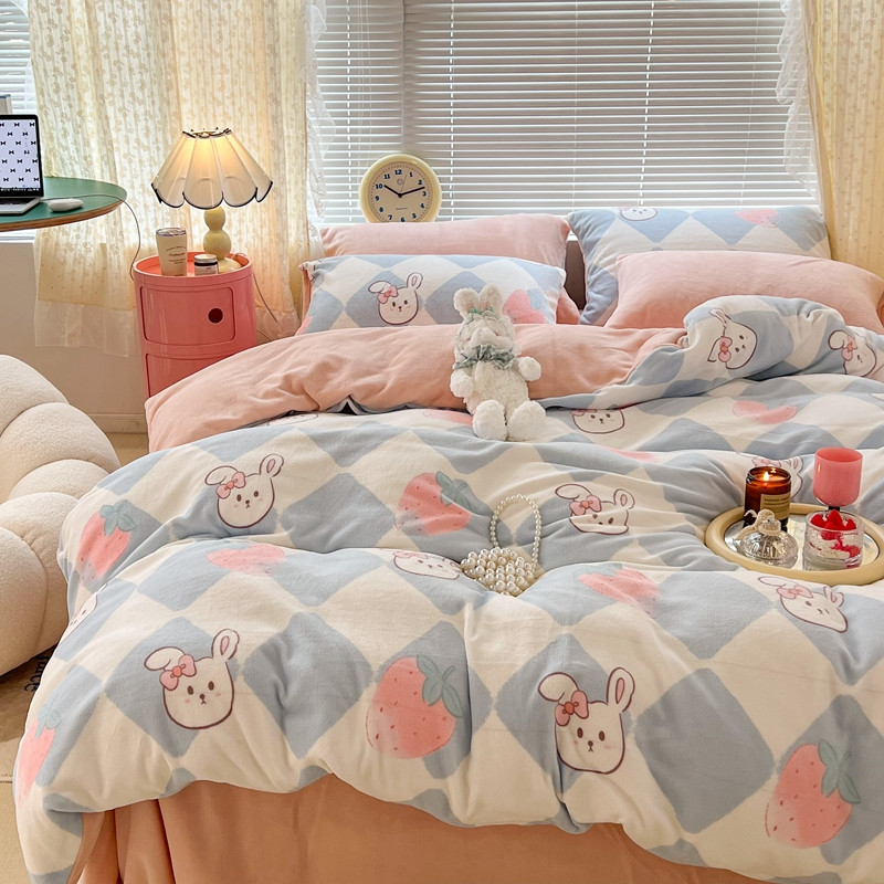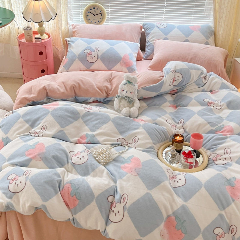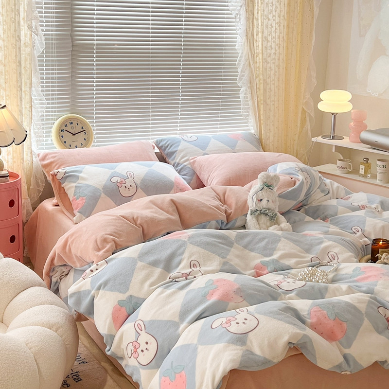 商品名称:昔可 2022新款牛奶绒卡通系列四件套 菱格小兔
