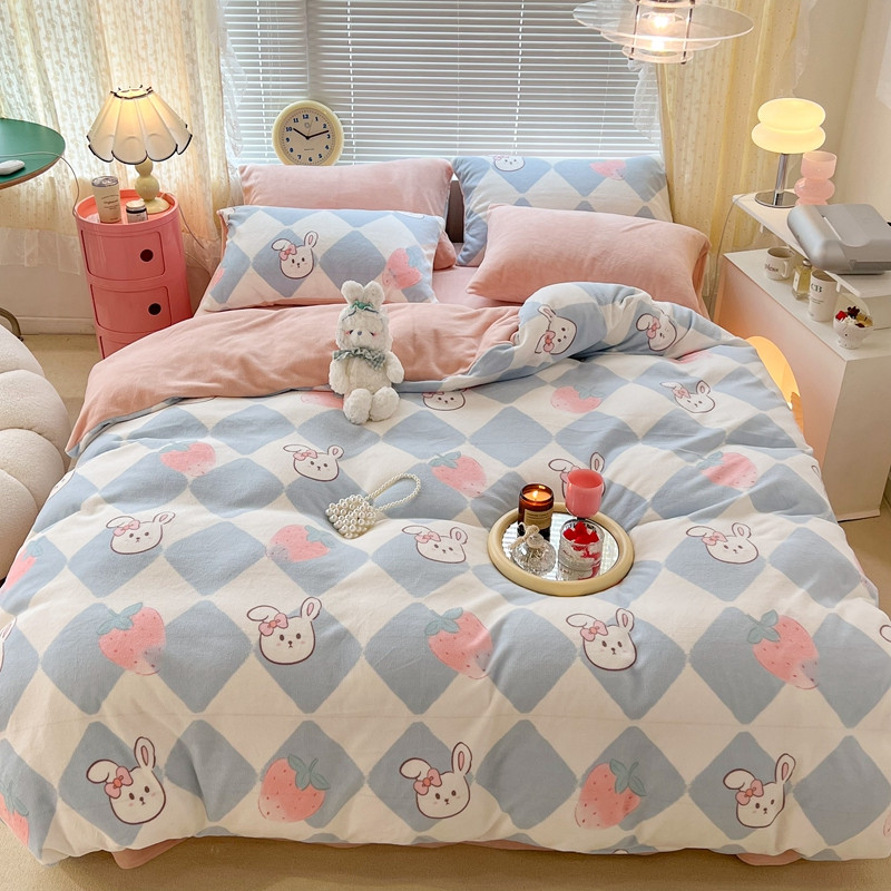 昔可 2022新款牛奶绒卡通系列四件套 菱格小兔