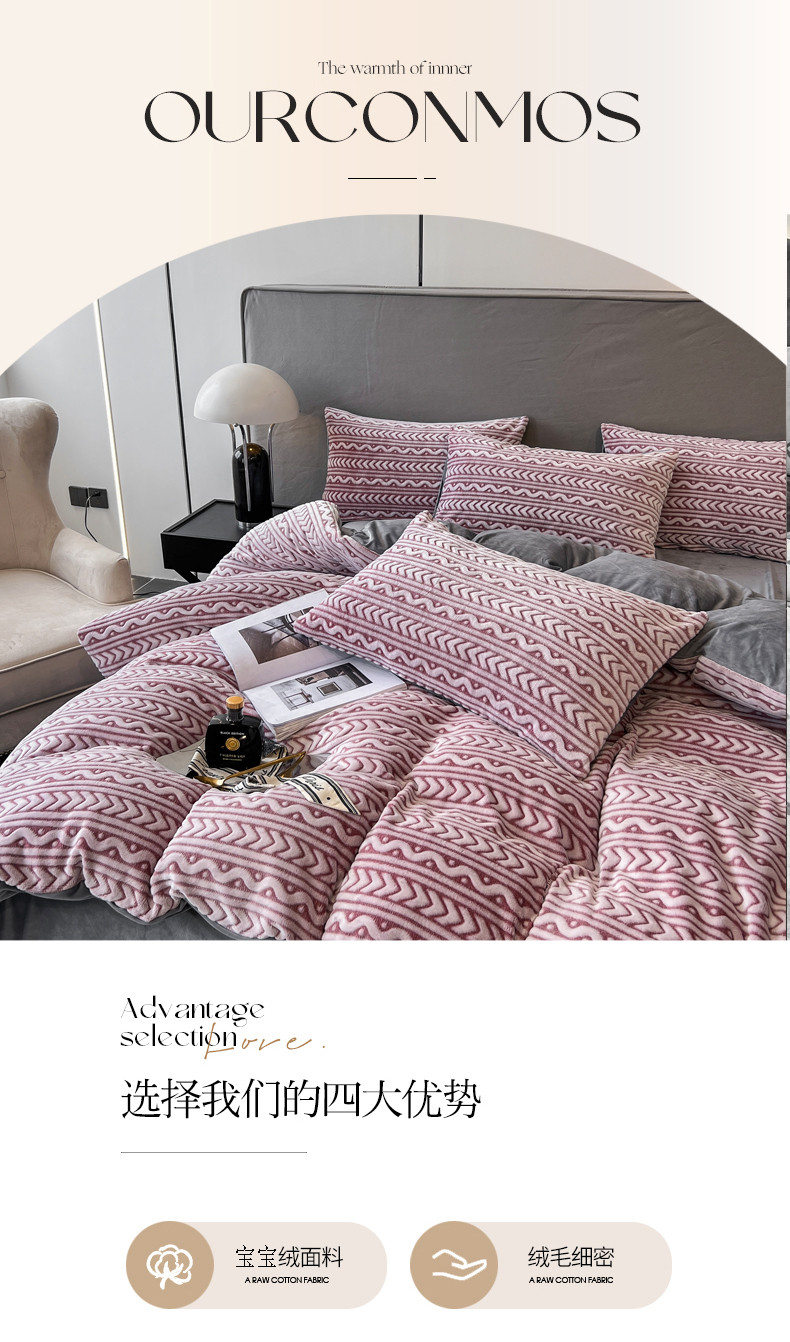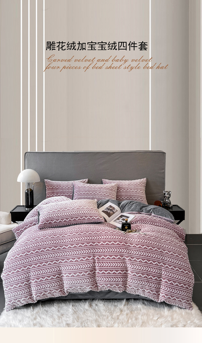 当前位置: 91家纺网 > 商品网购 > 床品套件 > 四件套 > 雕花绒四件套 > 啊雅家居 2025新款雕花绒加宝宝绒四件套 连雕豆沙