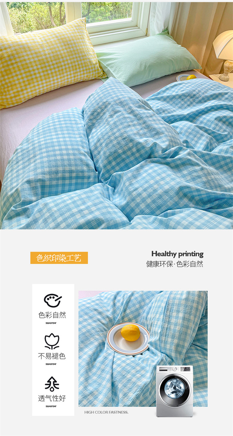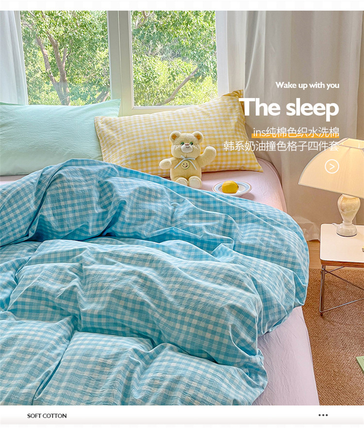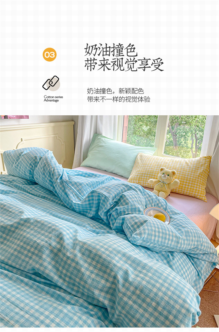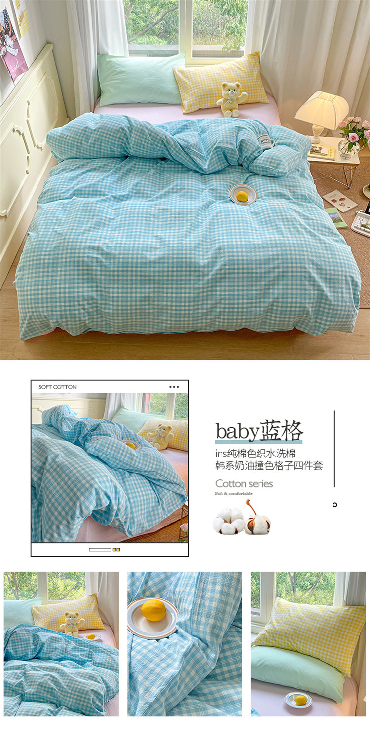 商品名称:桃子家居 ins纯棉色织水洗棉韩系奶油撞色格子四件套 baby蓝格