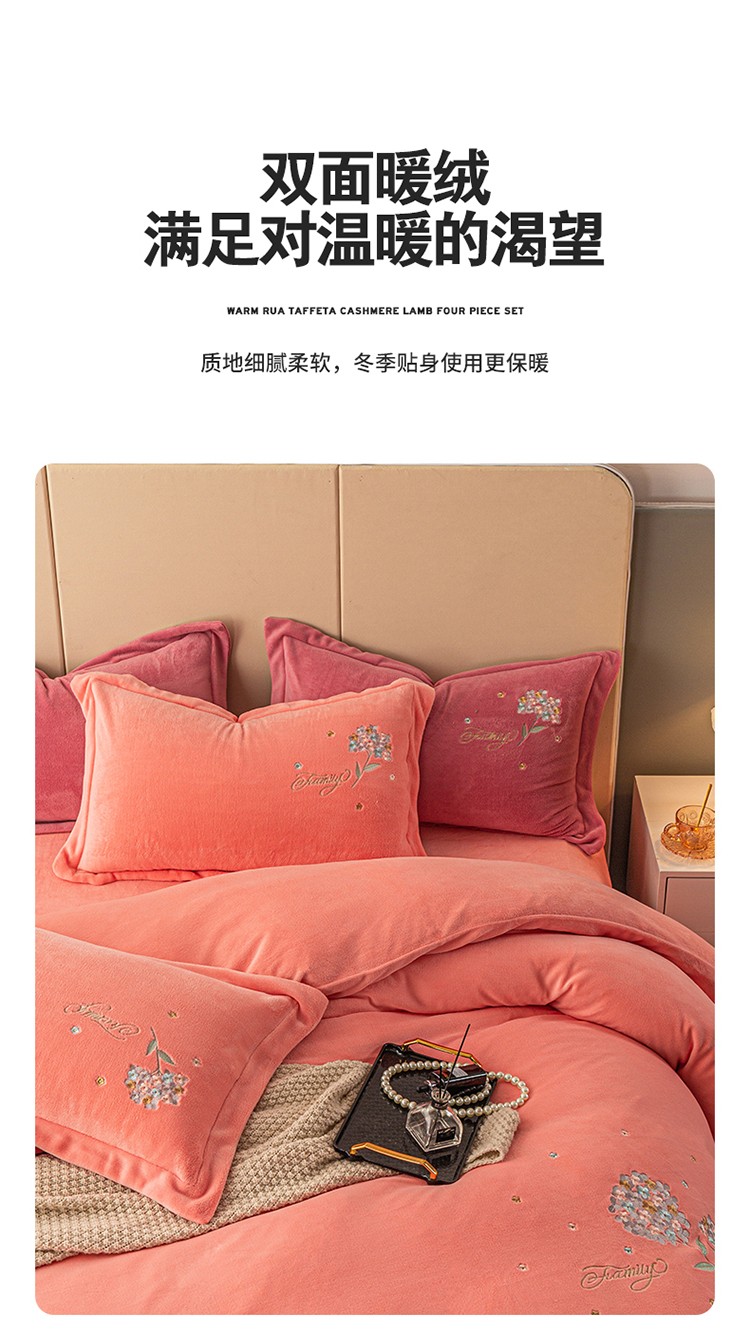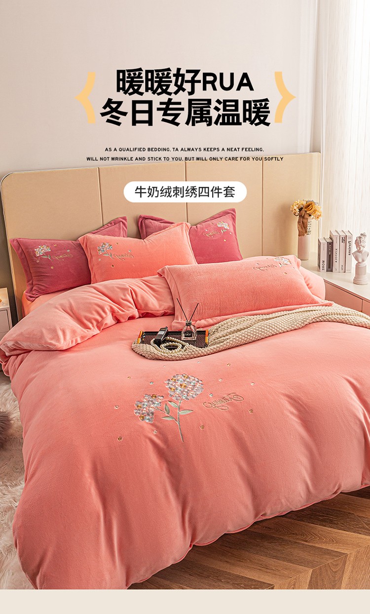 (总)名品优仓 2025新款220克牛奶绒绣花四件套-珊瑚,珊瑚-宝石蓝,珊瑚-粉色,珊瑚-姜黄,珊瑚-米杏,珊瑚-沫粉,珊瑚-杏粉