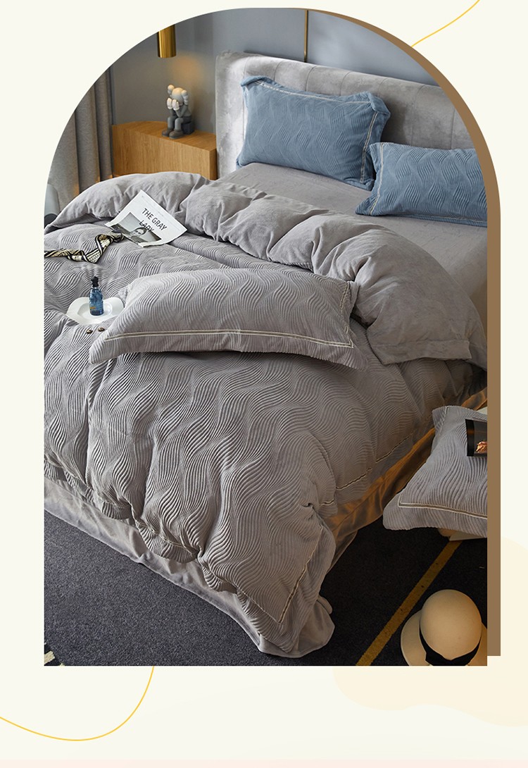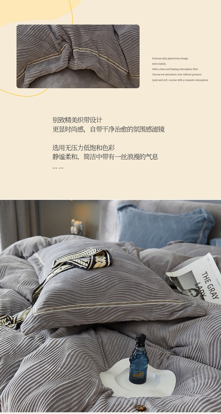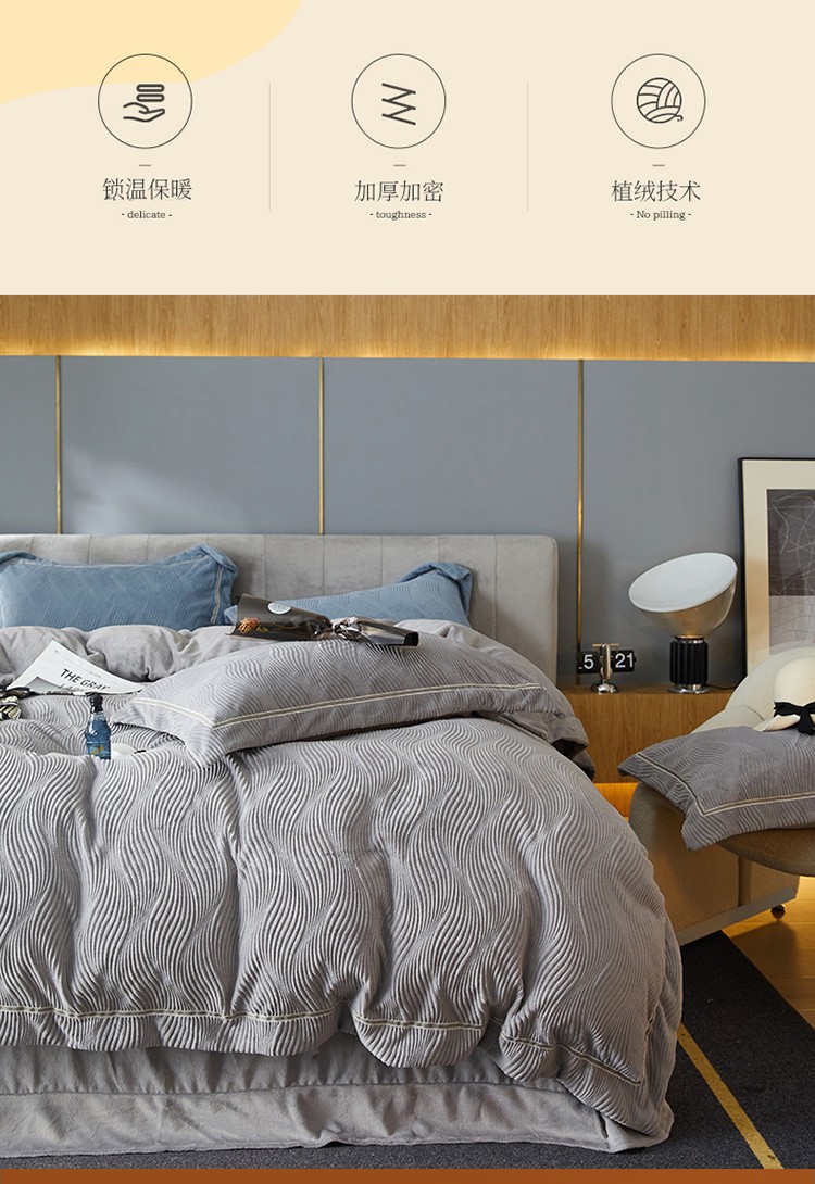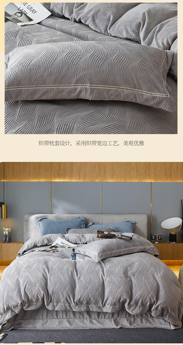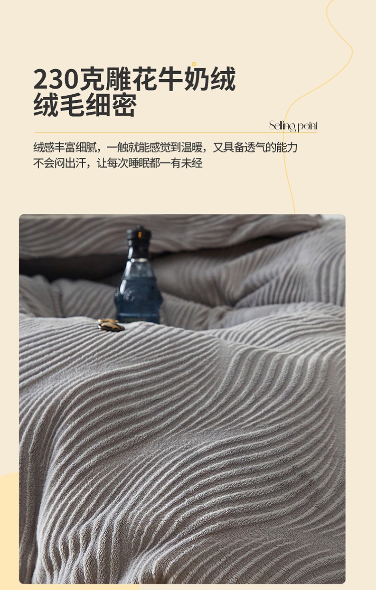 名品优仓 2022新款精美雕花牛奶绒230克四件套-玛利亚 玛利亚-浅灰