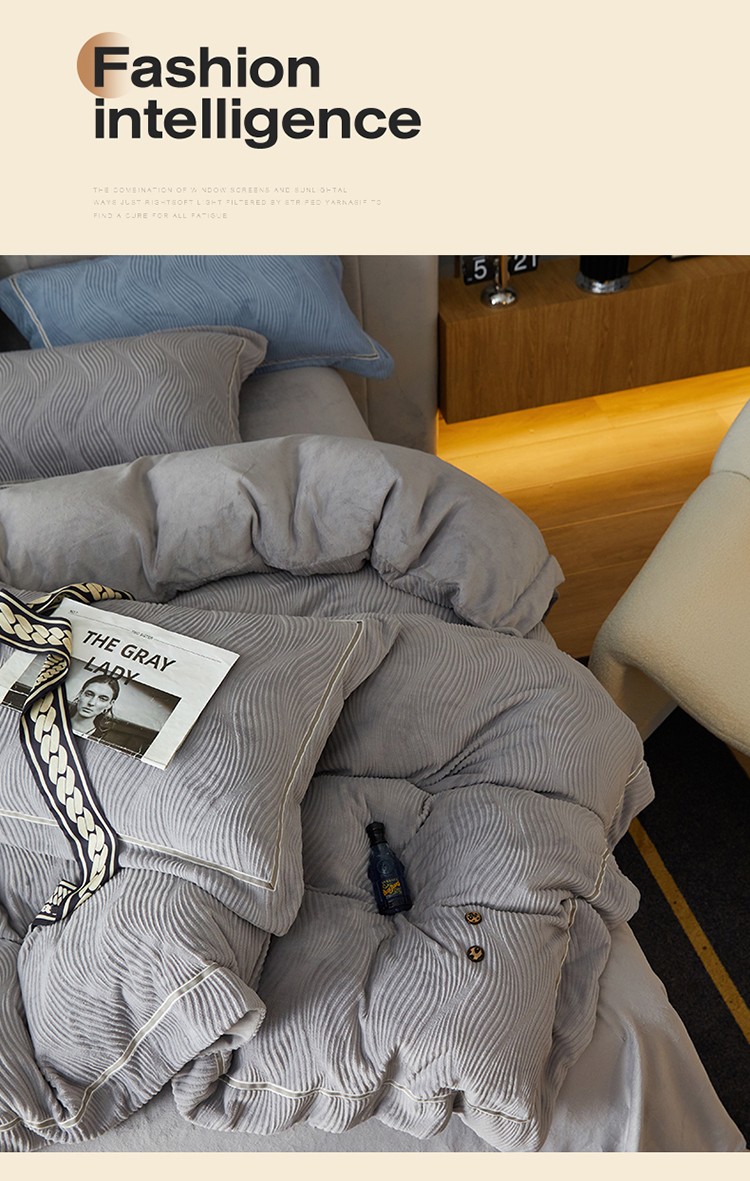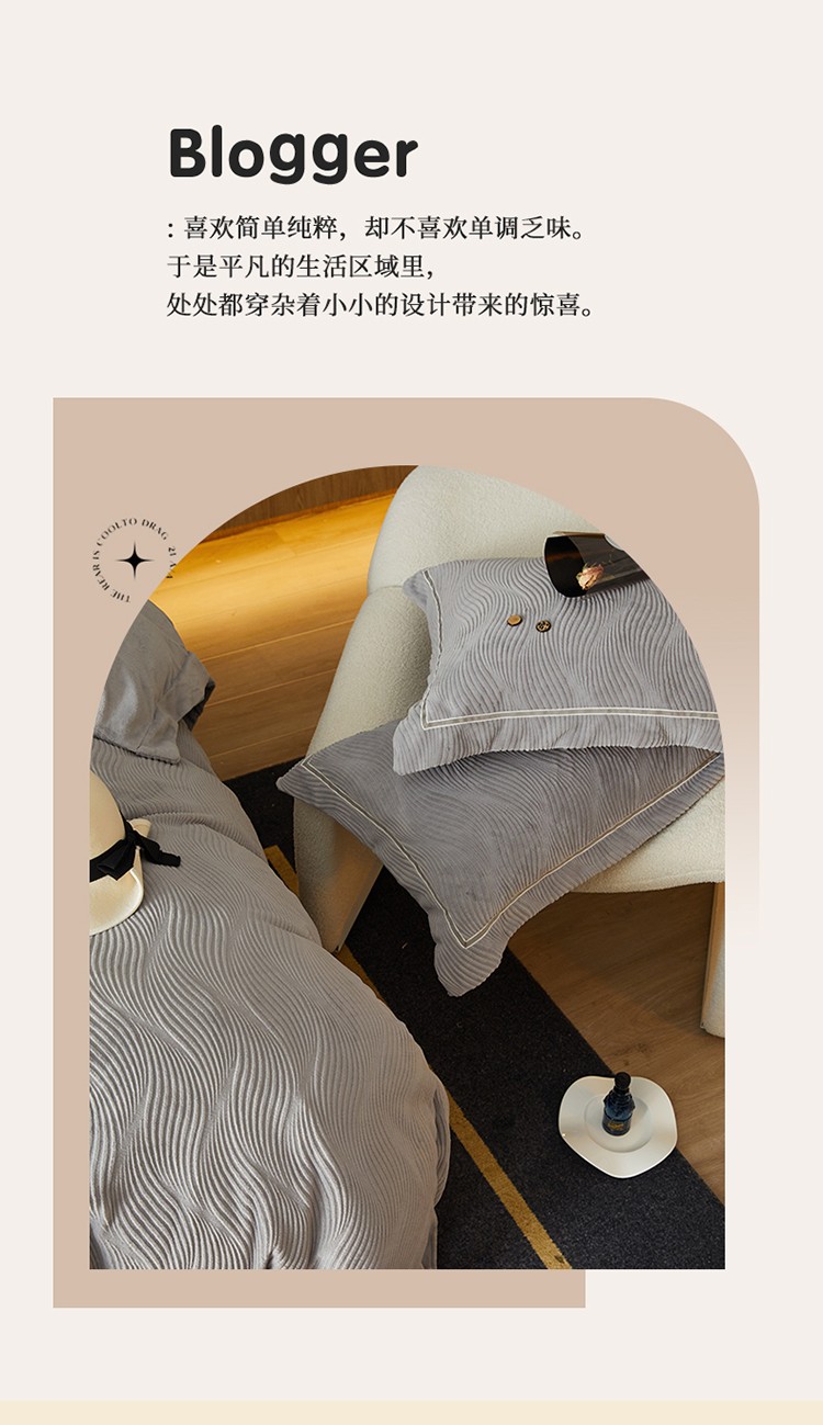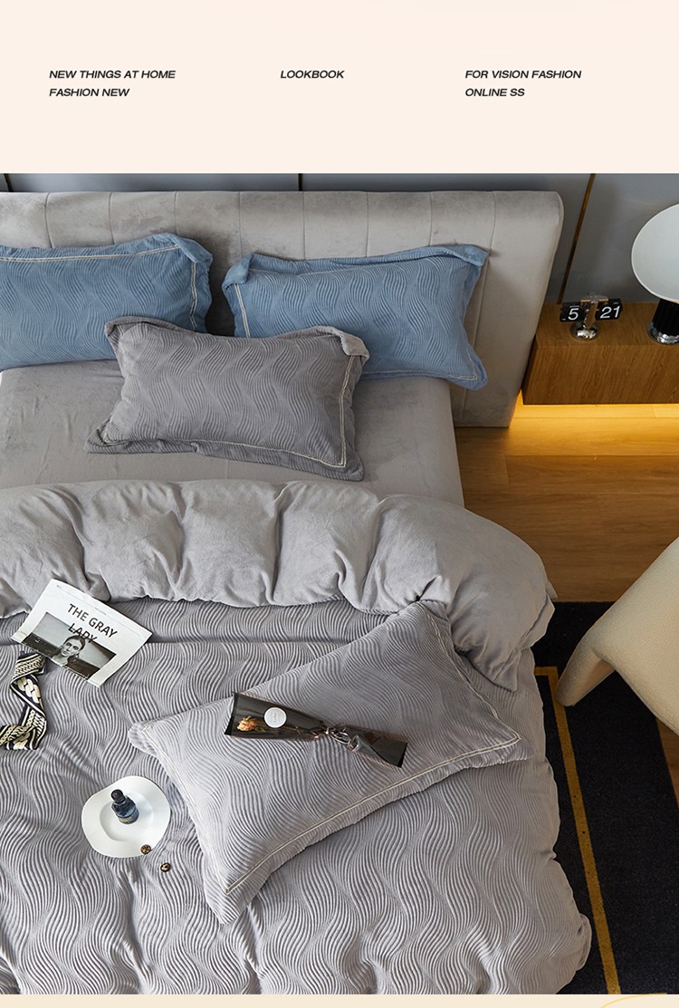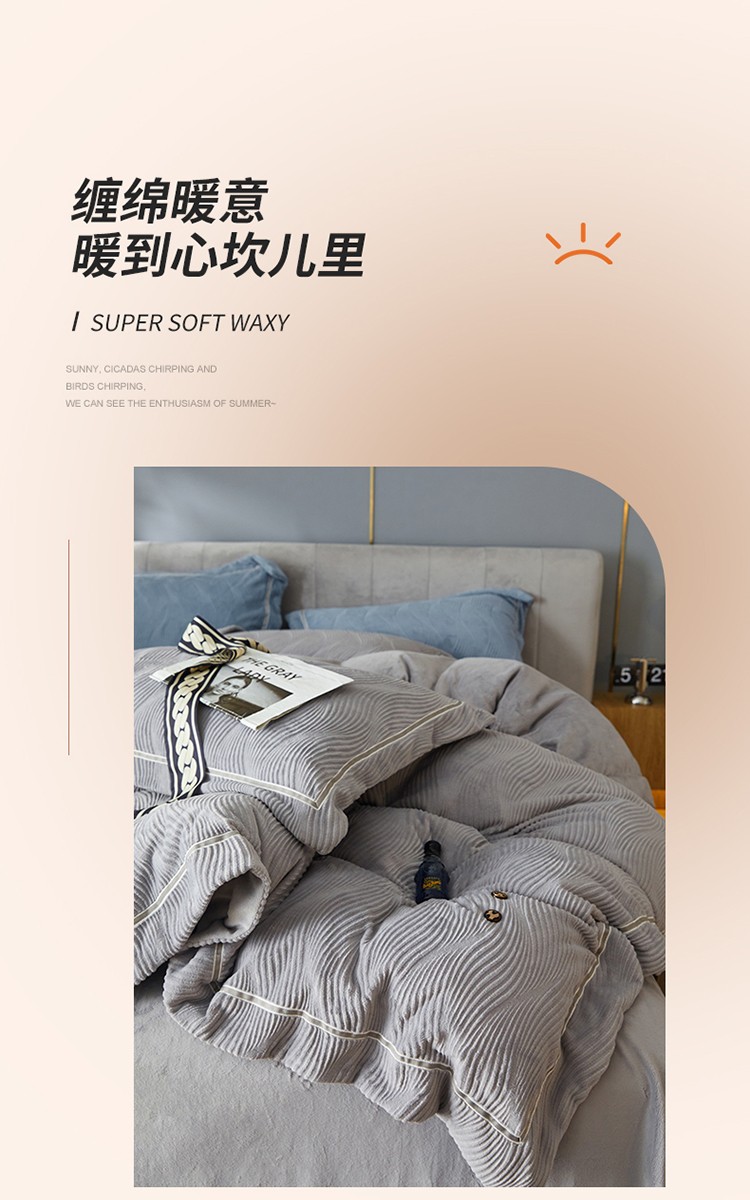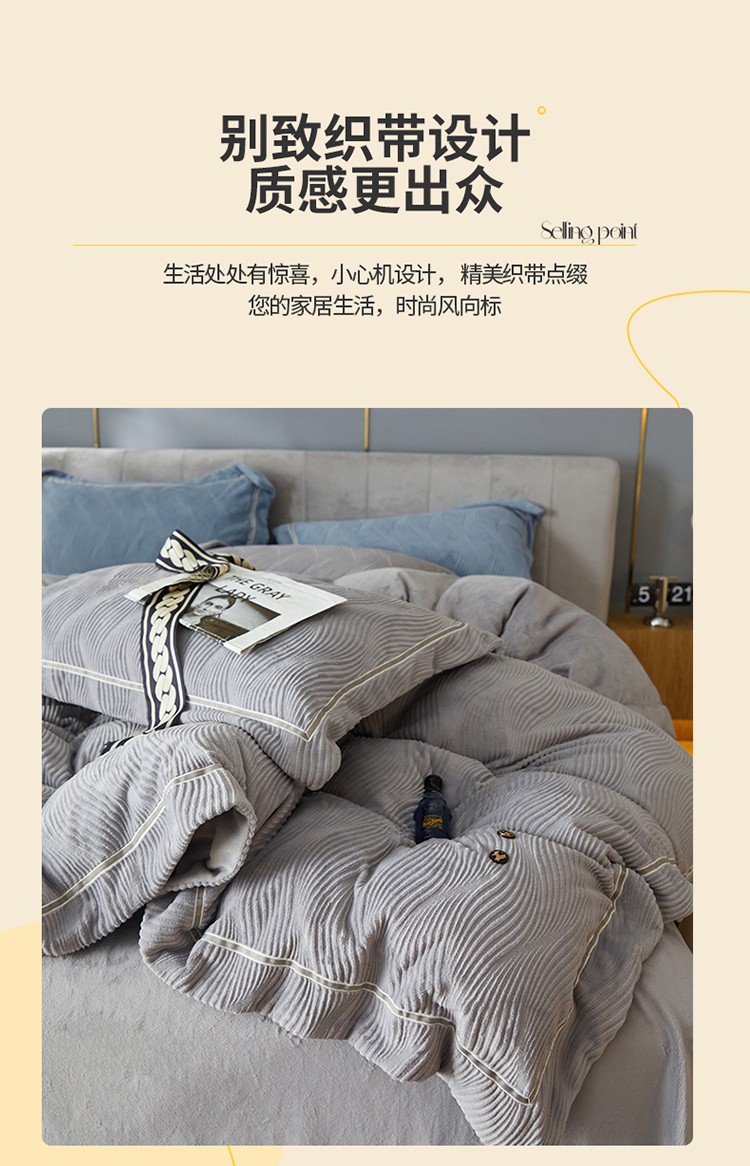 名品优仓 2022新款精美雕花牛奶绒230克四件套-玛利亚 玛利亚-浅灰