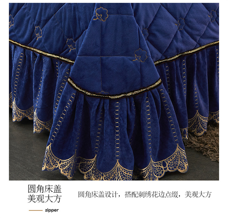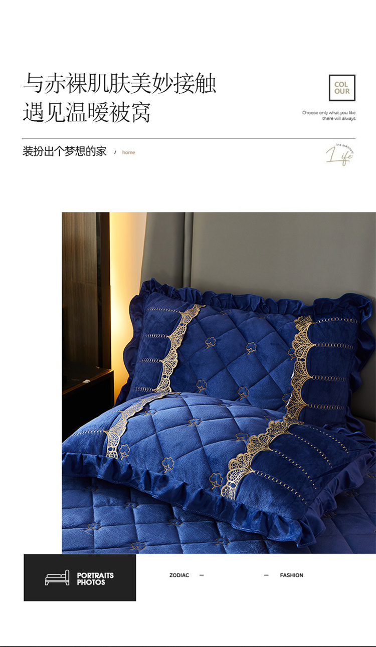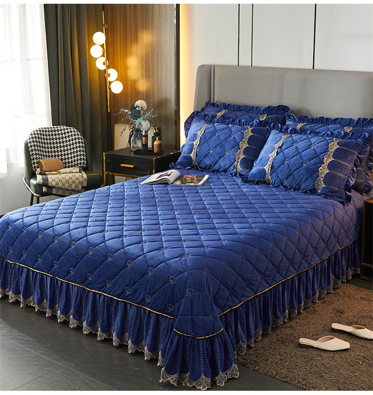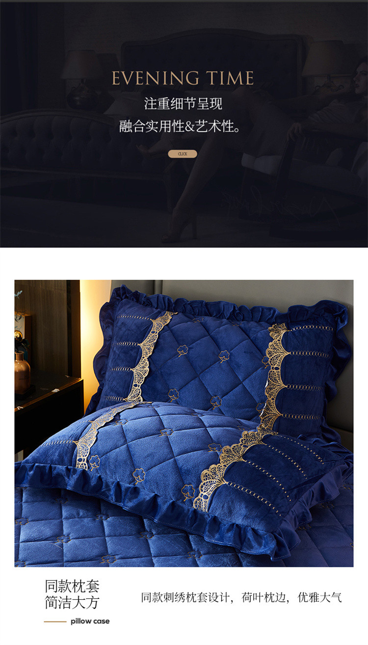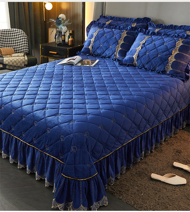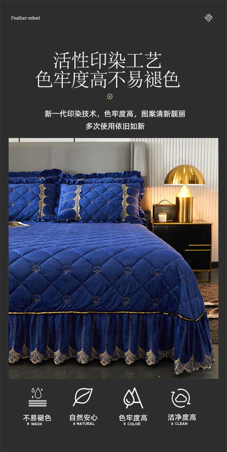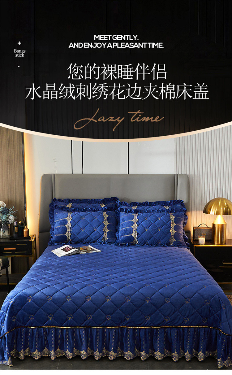 商品名称:十个点家纺 2024新款刺绣水晶绒床盖三件套 宝蓝