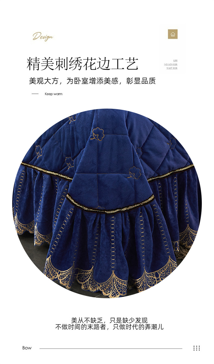十个点家纺 2024新款刺绣水晶绒床盖三件套 宝蓝