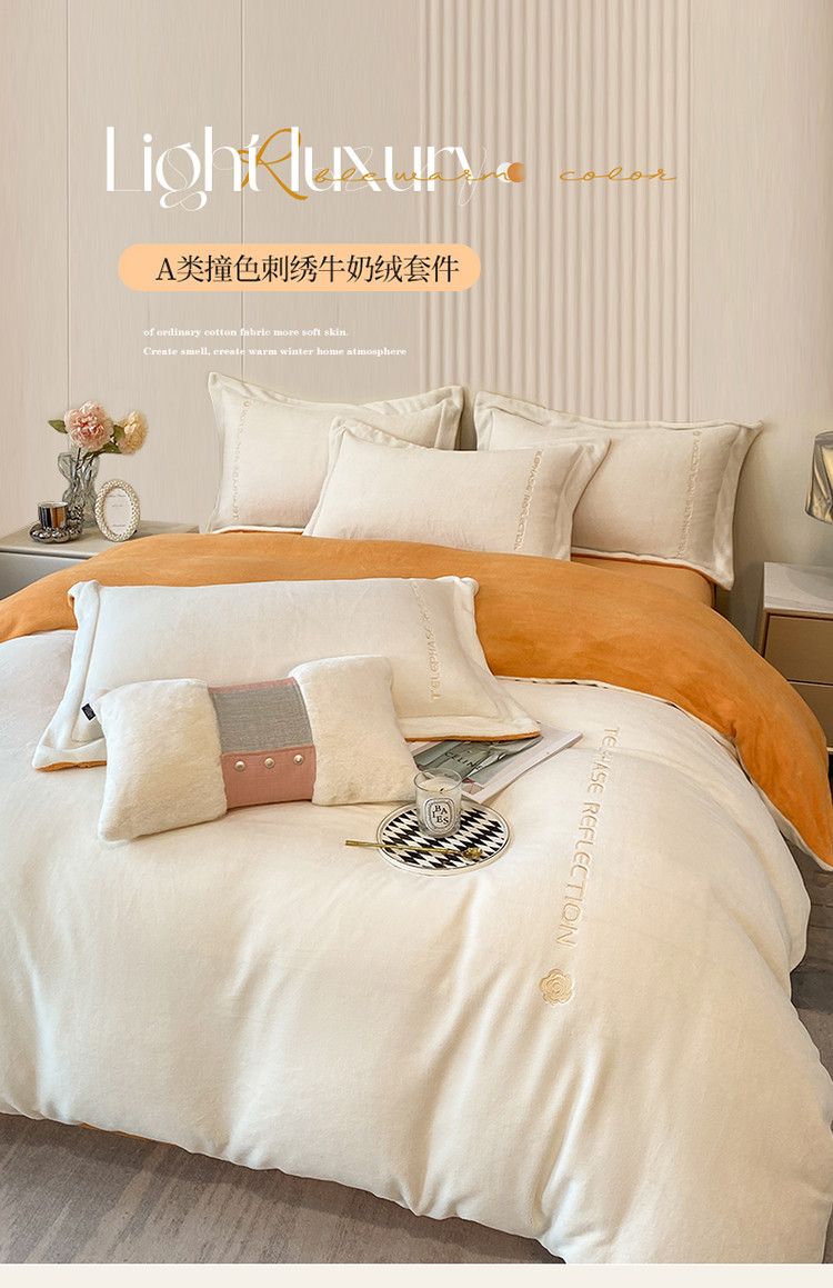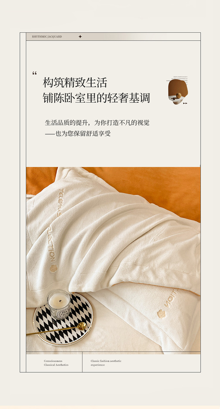 商品名称:蓝巢 2022新款高克重牛奶绒唯美系列四件套 唯美-奶昔白