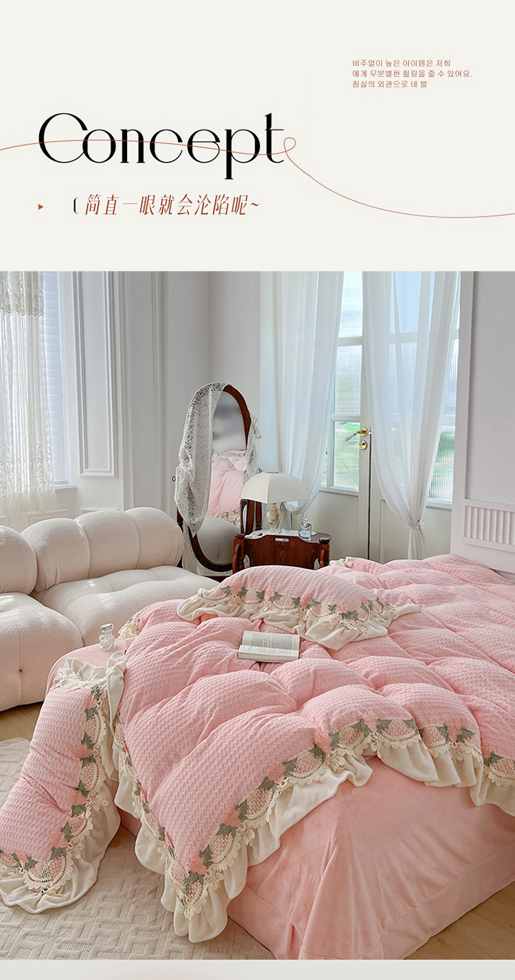 总玛奇朵 高定蕾丝边全消光云芙暖绒四件套-唯 一(场景1)