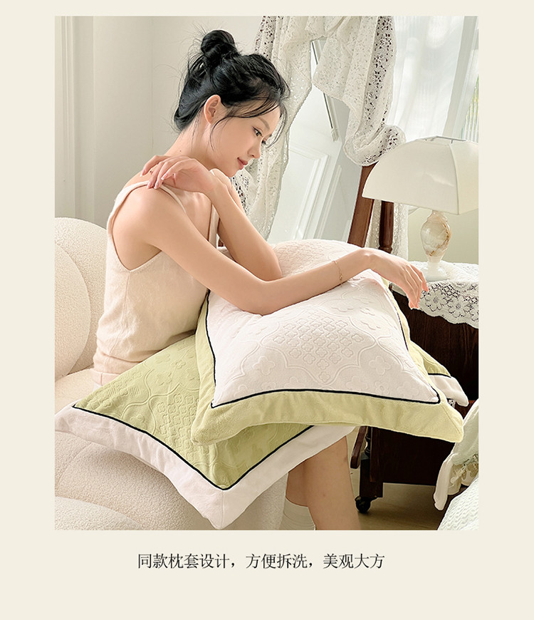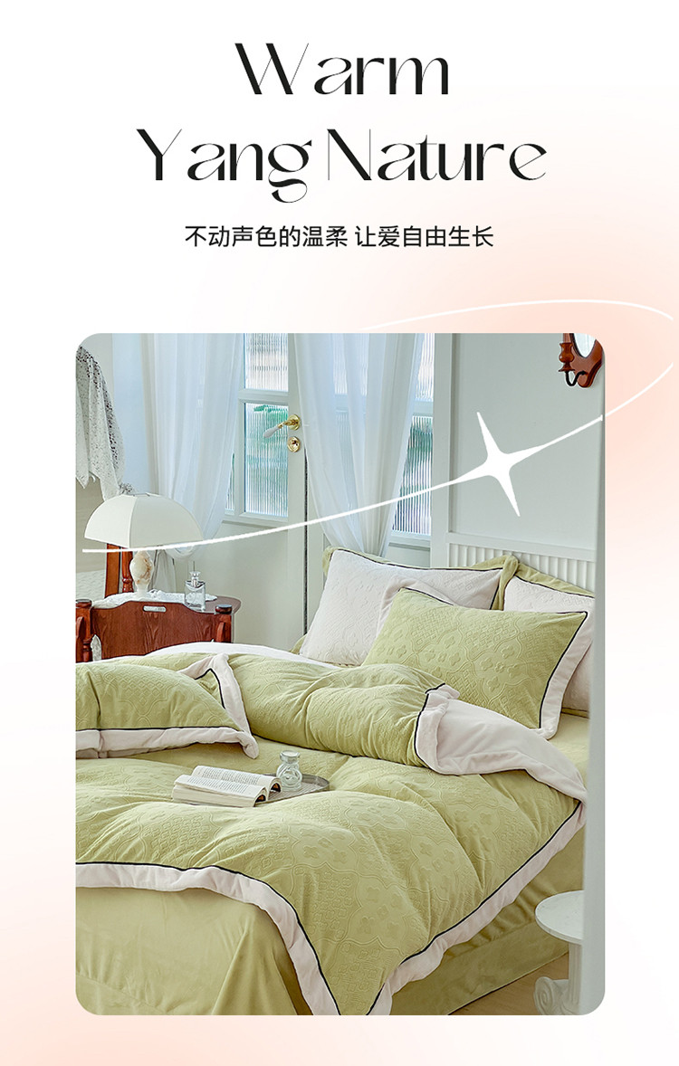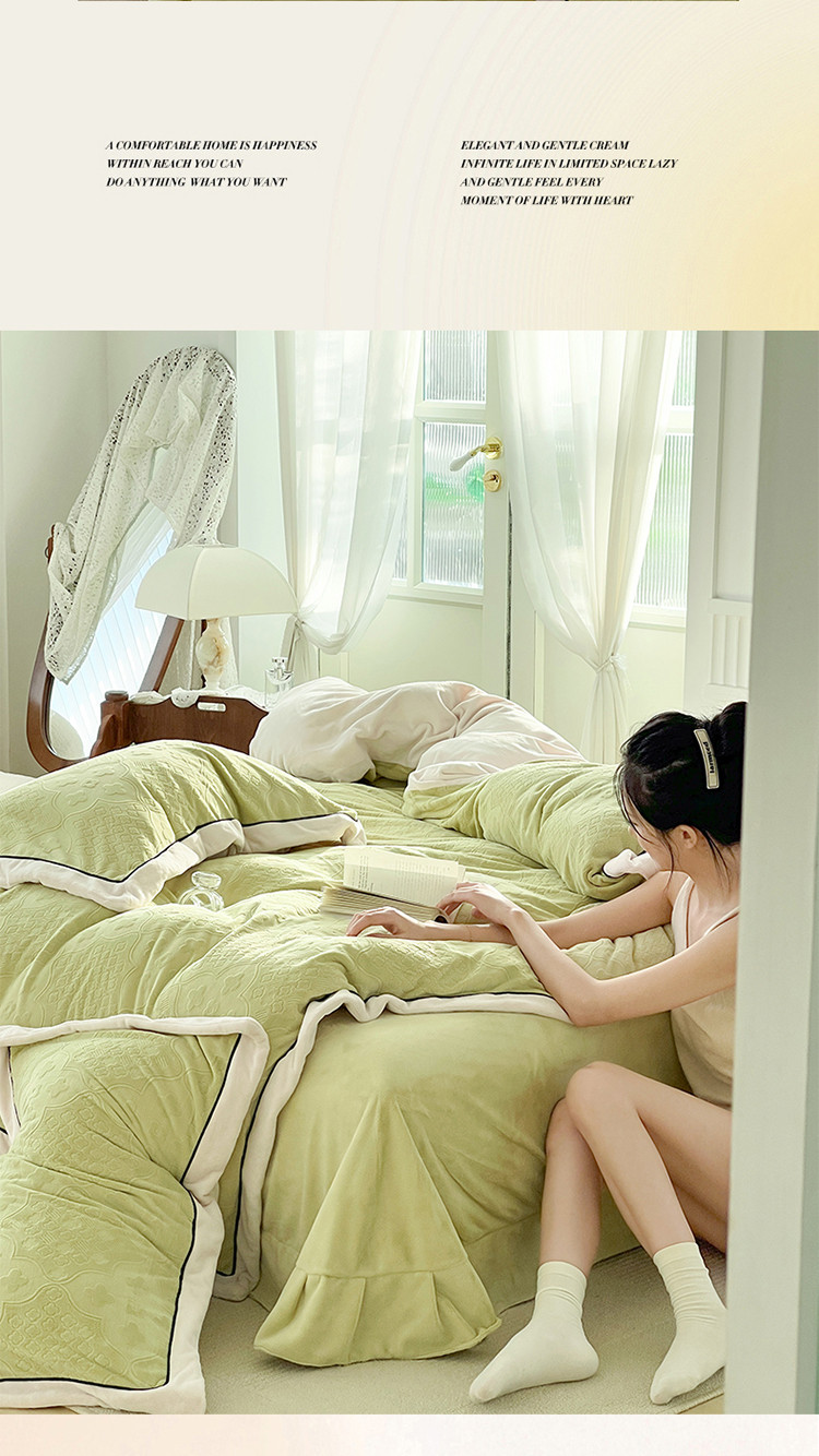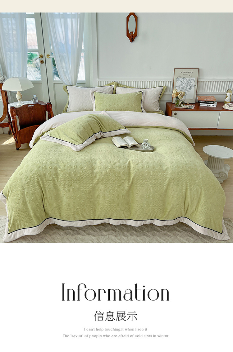 商品名称:玛奇朵新款全消光云芙雕花绒四件套-西雅图-场景1 西雅图-绿