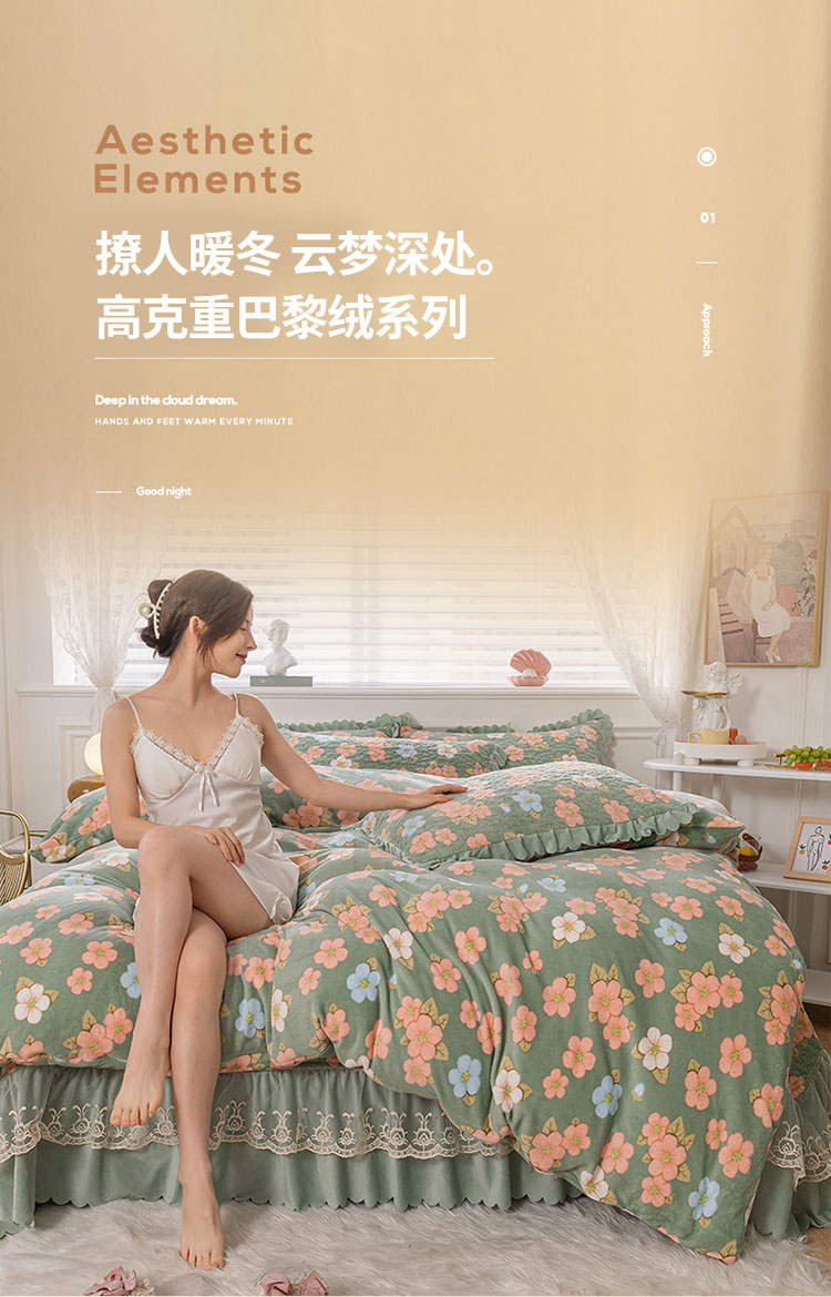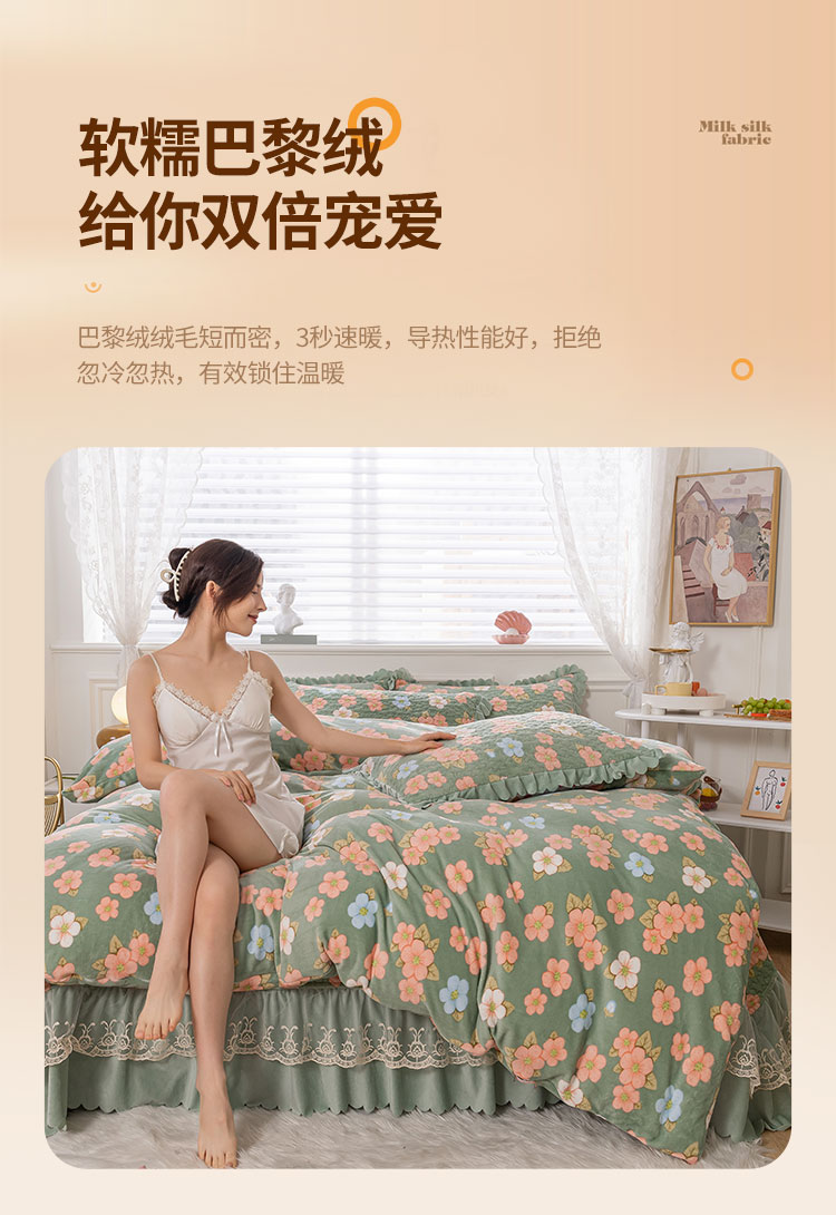 商品名称:乐嘉盈 2025新款印花巴黎绒四件套 春日花香