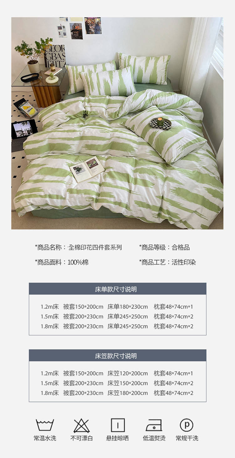 商品名称:吉象家纺 2022新款全棉北欧风印花系列四件套 文艺绿