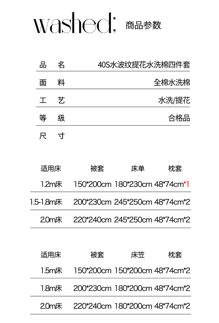 商品名称:(总)风向标家纺 2023新款40s水波纹提花水洗棉四件套