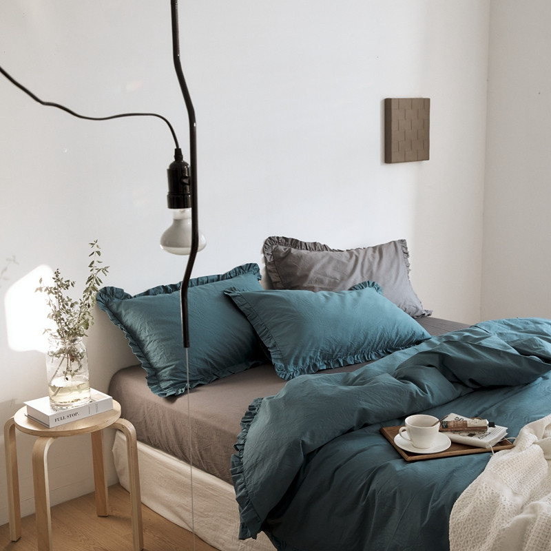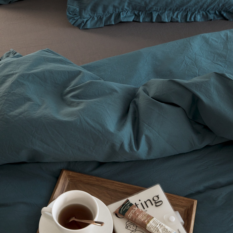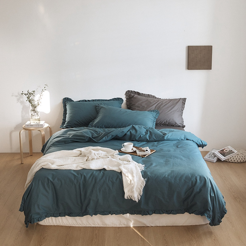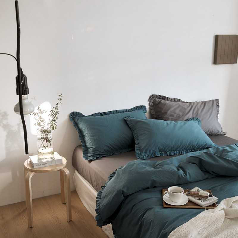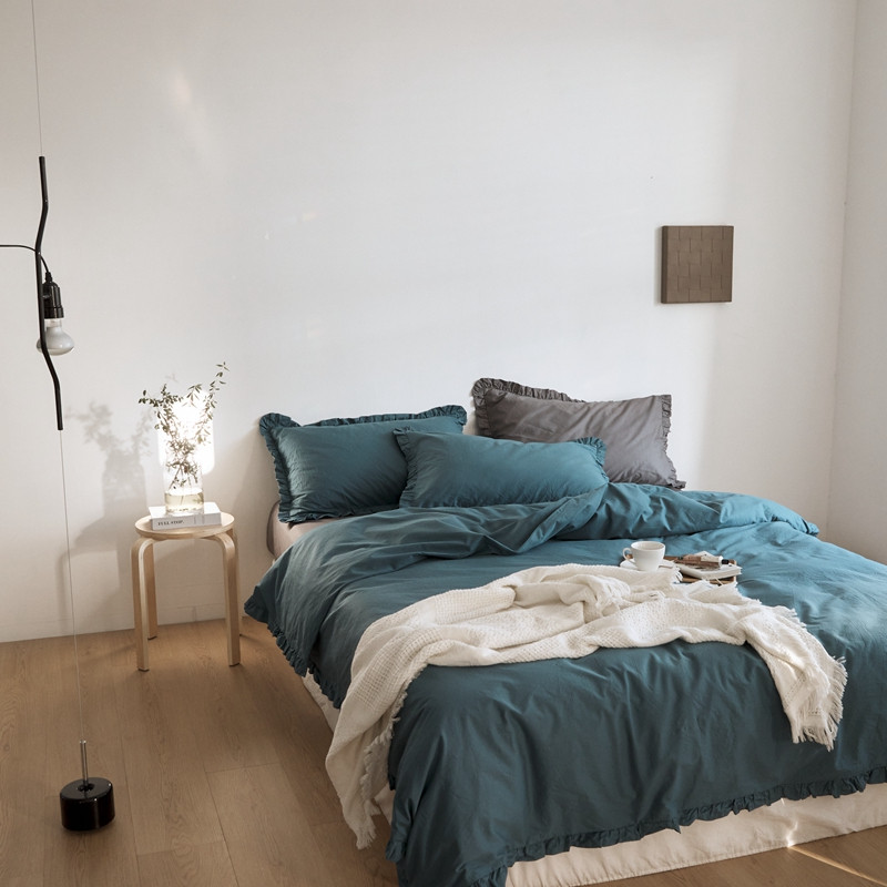 当前位置: 91家纺网 > 商品网购 > 床品套件 > 四件套 > 全棉普通四件套 > 新款13372全棉日系褶皱边四件套 青蓝色
