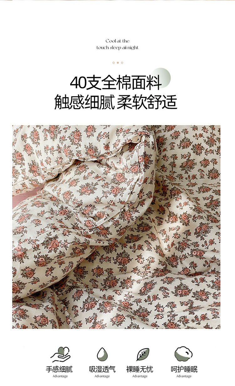 当前位置: 91家纺网 > 商品网购 > 床品套件 > 四件套 > 全棉普通四件套 > 畅畅家纺2023新款40支13372全棉复古小碎花保暖四件套 花西子