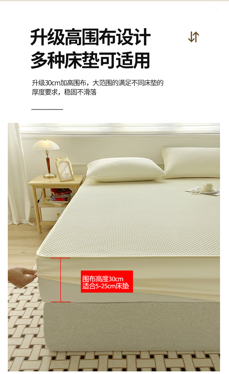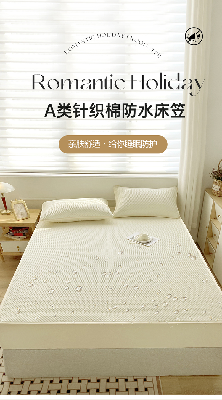 (总)忘忧草 2025新款A类针织棉夹棉防水床笠隔尿垫床罩,淡雅白,豆沙红,翡翠绿,丽人粉,浅米黄,绅士灰