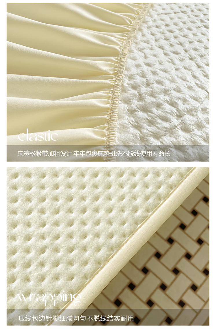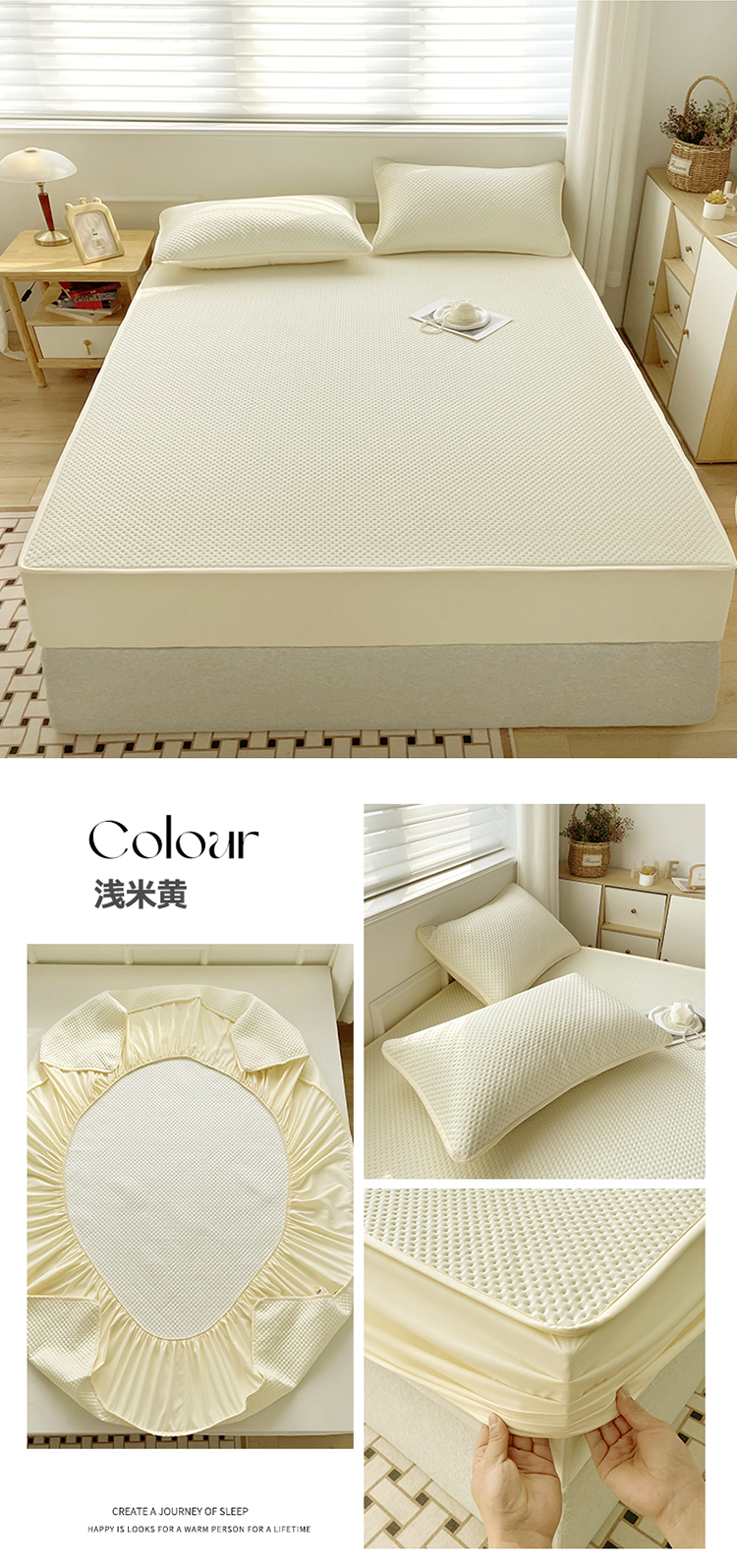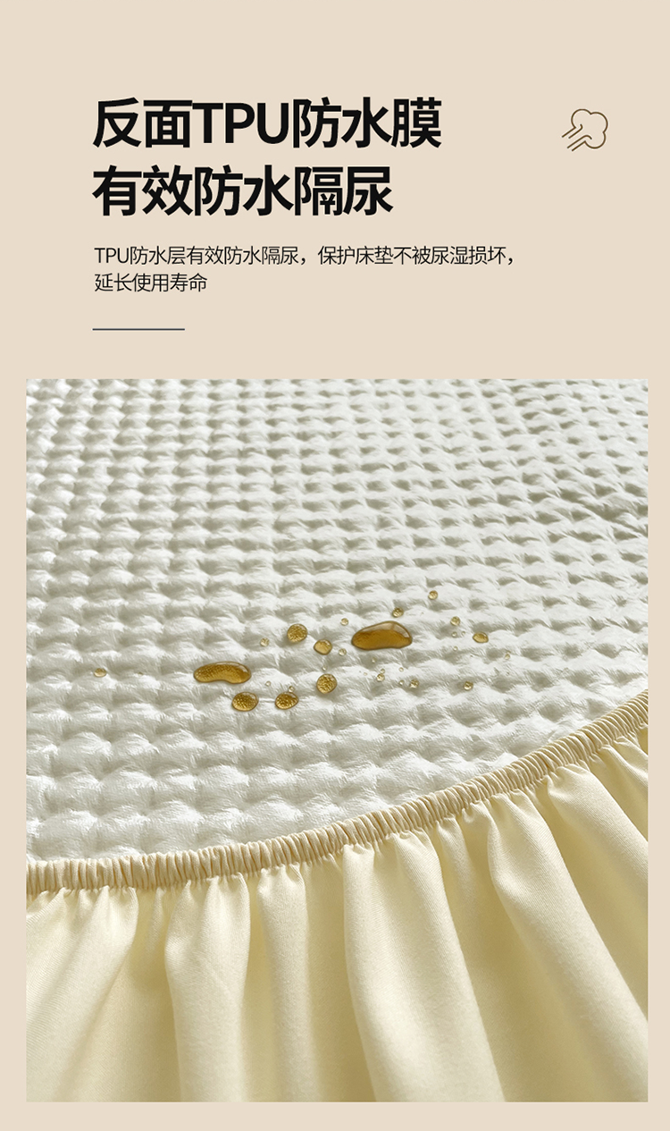 商品名称:忘忧草 2023新款A类针织棉夹棉防水床笠 浅米黄