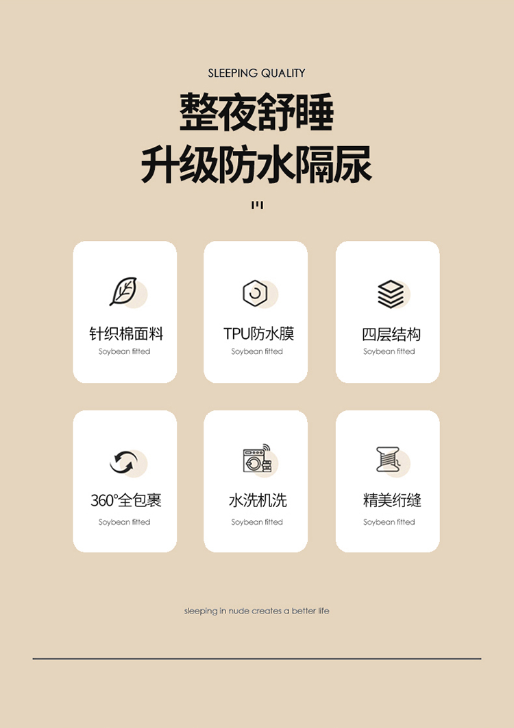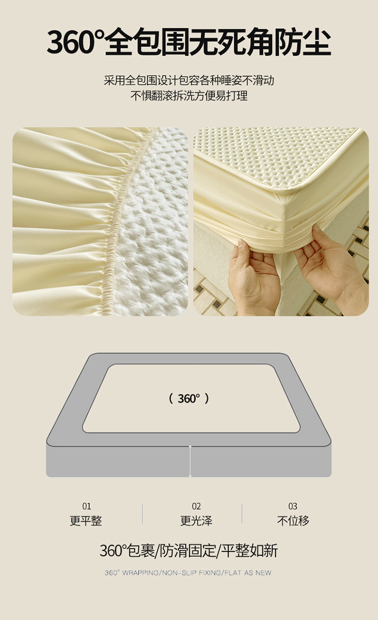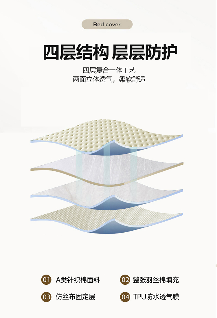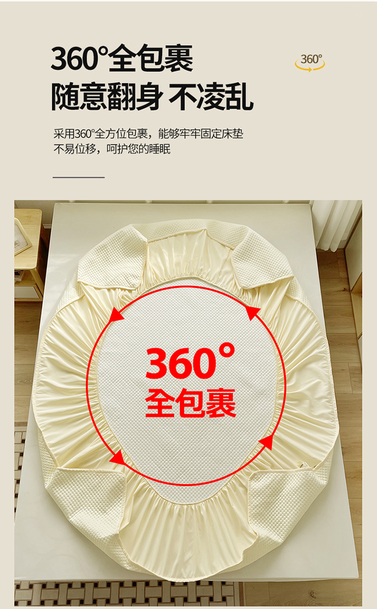 商品名称:忘忧草 2023新款A类针织棉夹棉防水床笠 浅米黄