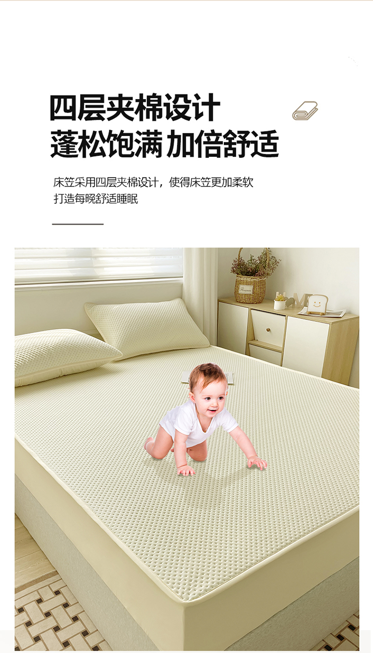忘忧草 2023新款A类针织棉夹棉防水床笠 浅米黄