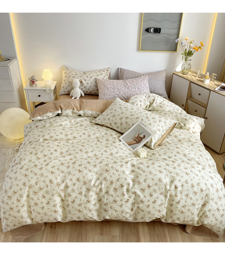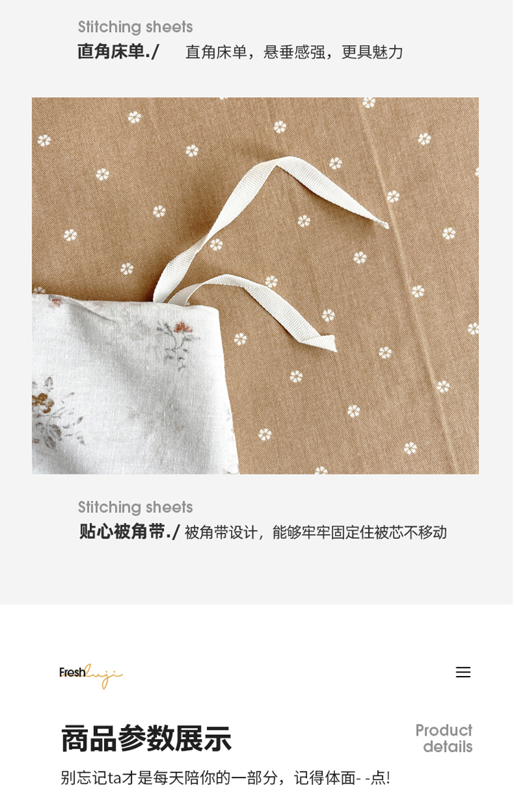 商品名称:千朵 2023新款13372全棉印花四件套 法式棕花