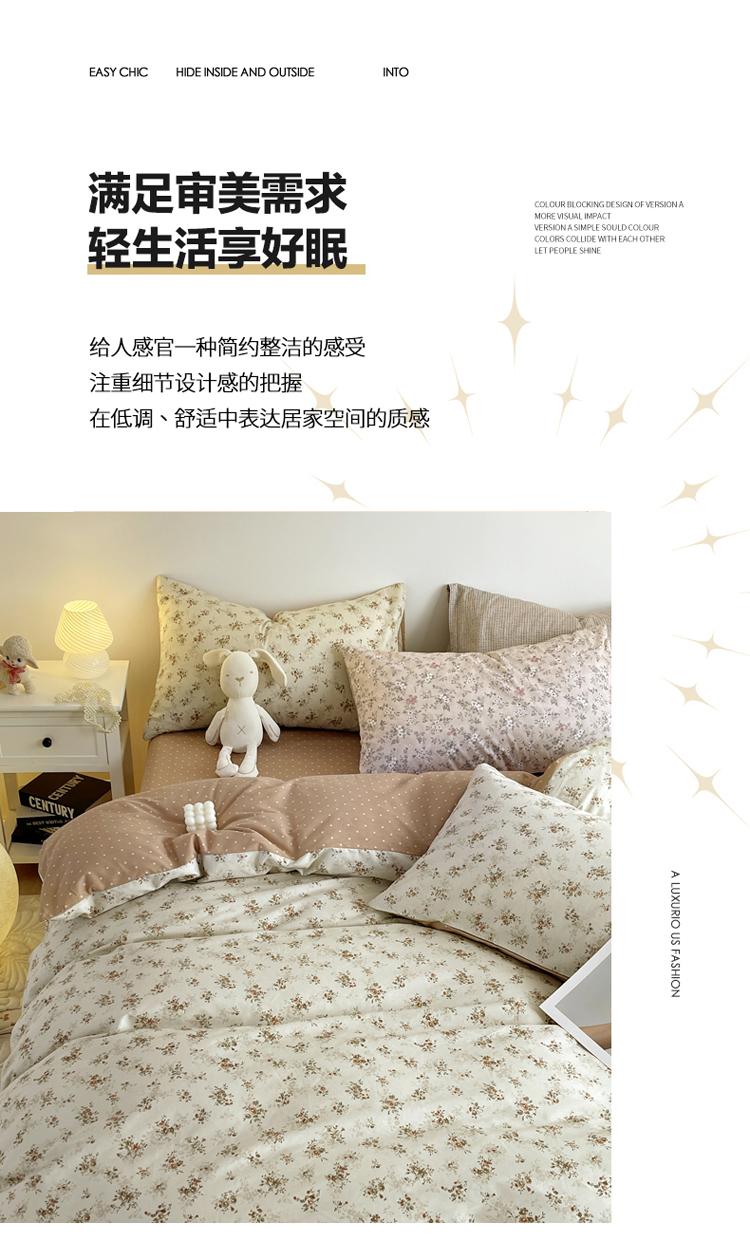 (总)千朵 2025新款全棉磨毛四件套,浪漫人生粉,浪漫人生米,香漫豆沙,茵然豆沙,茵然咖,珍妮咖,珍妮绿