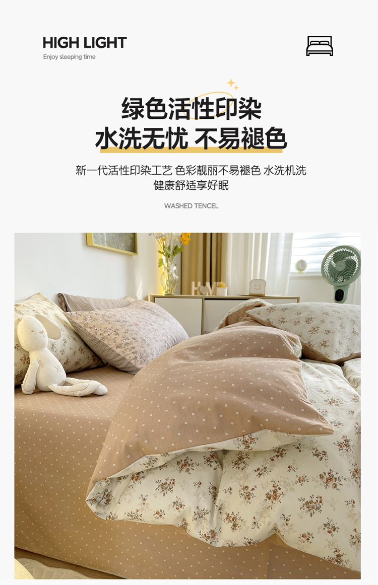 (总) 千朵 2022新款全棉水洗棉四件套,垂柳绿,琥珀棕,潜水兰,云杉橙