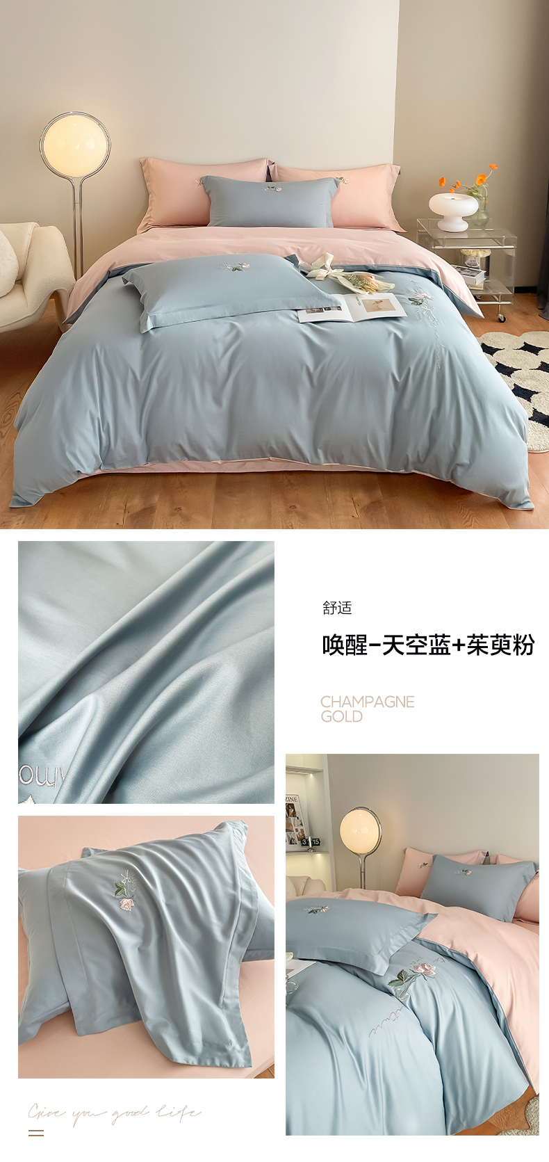 (总)秀色家纺 2025新款轻奢60支贡缎长绒纯棉四件套全棉简约清新刺绣花被套床单高级感,唤醒-奶昔白+茱萸粉,唤醒-天空蓝+茱萸粉,唤醒-奶昔白+天空蓝,唤醒-奶昔白+香槟金,唤醒-茱萸粉+烟墨灰,奶昔白+丁香,奶昔白+莺茶绿,茱萸粉+丁香,莺茶绿+香槟金,香槟金+烟墨灰