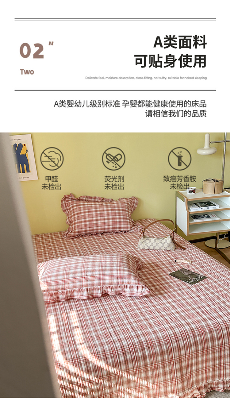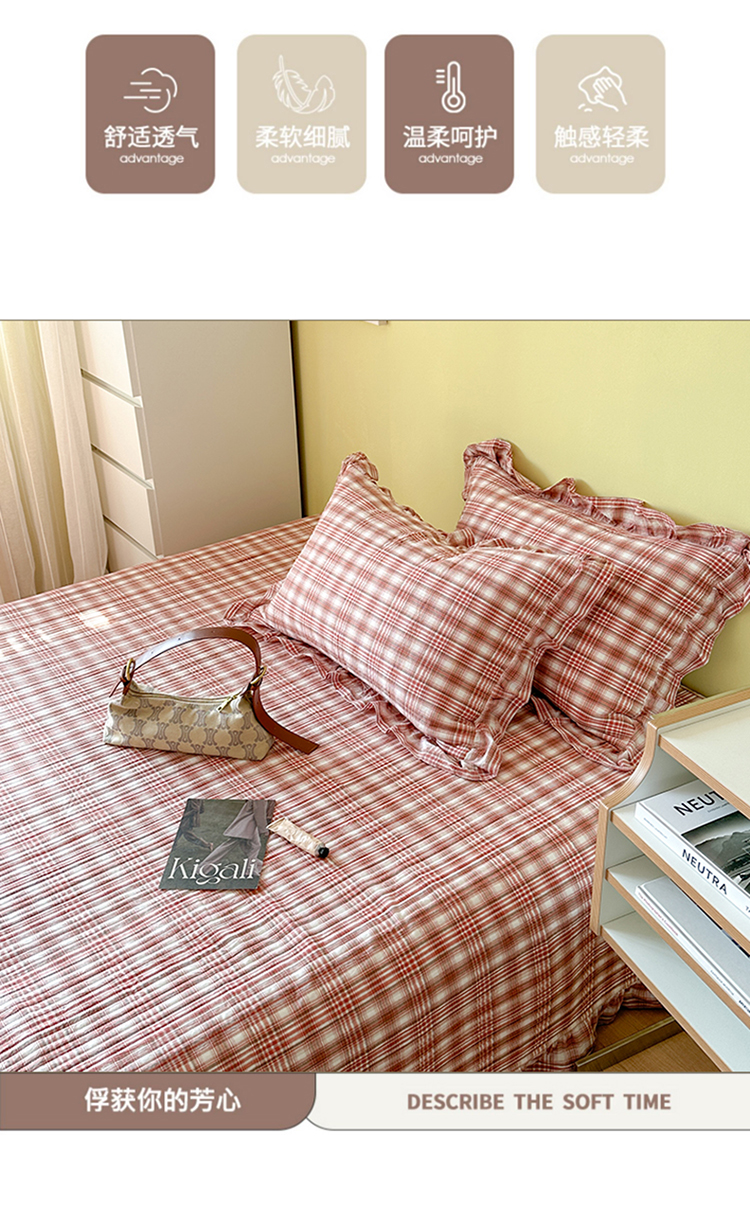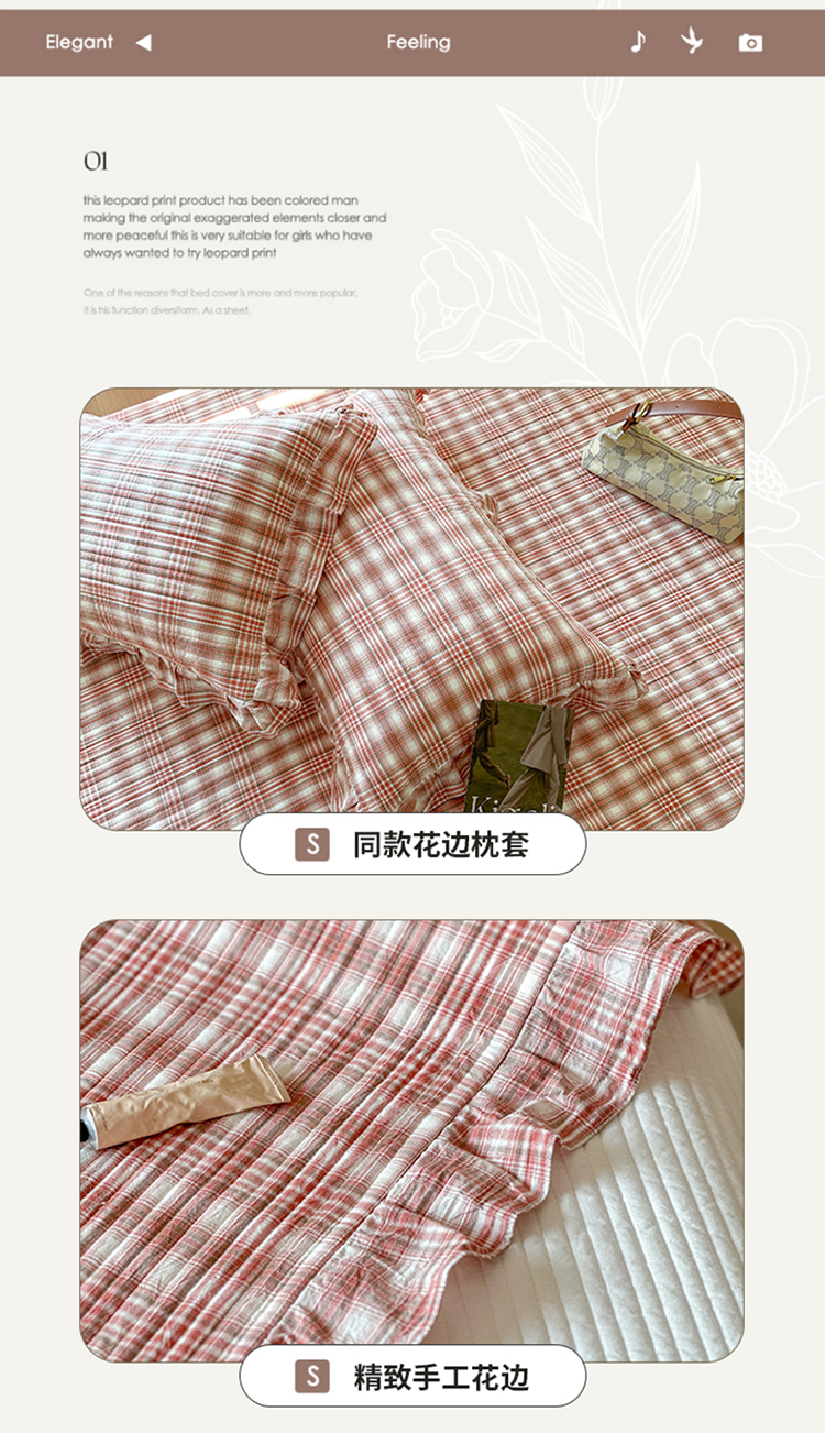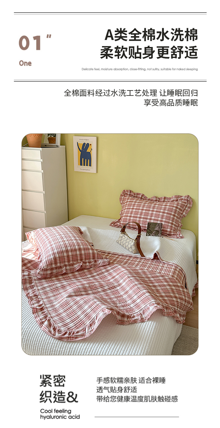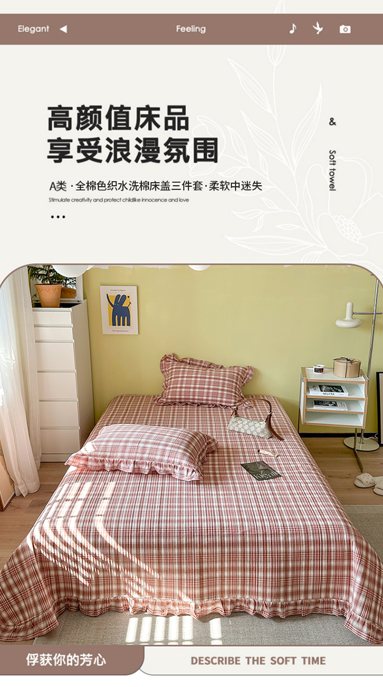 琳可家居 2023新款A类韩版色织全棉水洗棉单被套 红蕉格