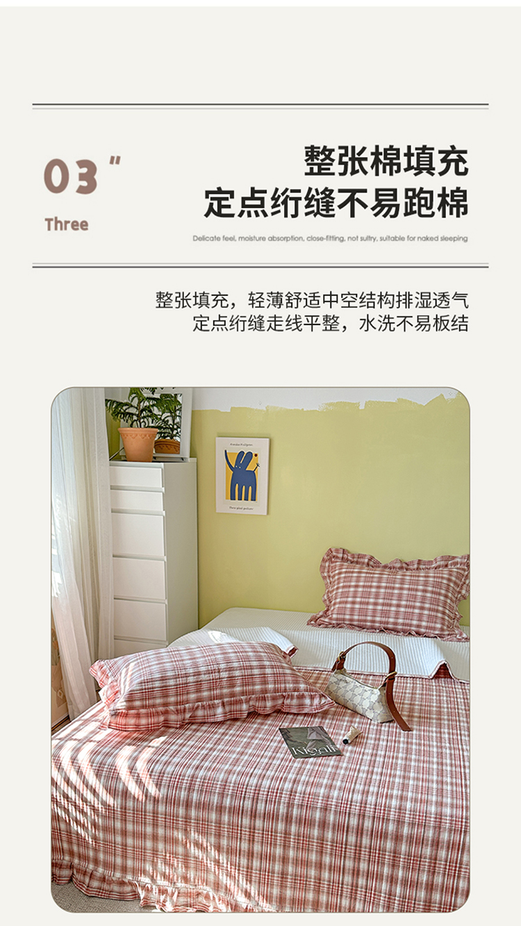 (总)琳可家居 2026春夏新品双面斜纹全棉印花绣花床盖可机洗加密绗缝高温水洗,格子樱桃粉,格子樱桃蓝,条纹狗狗,条纹樱桃,组合