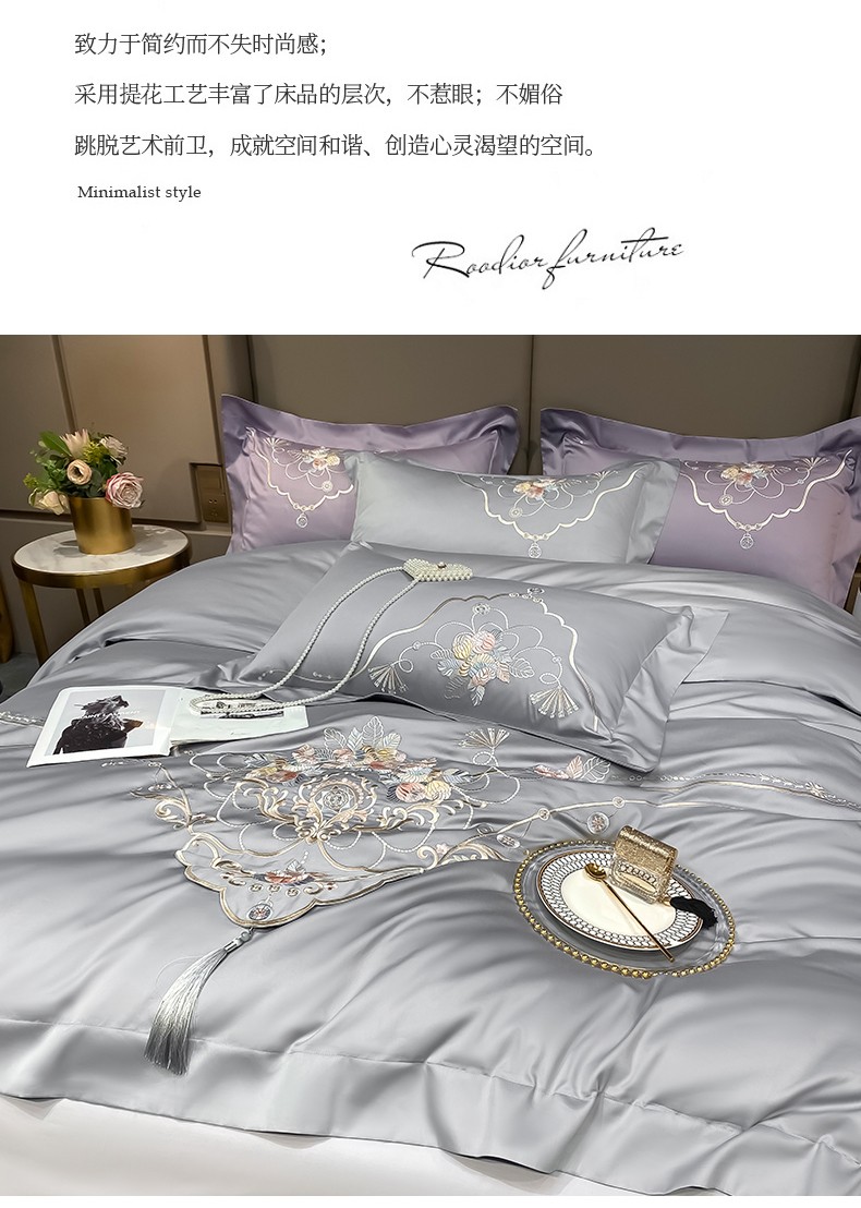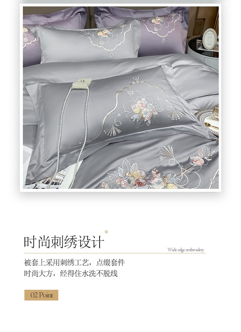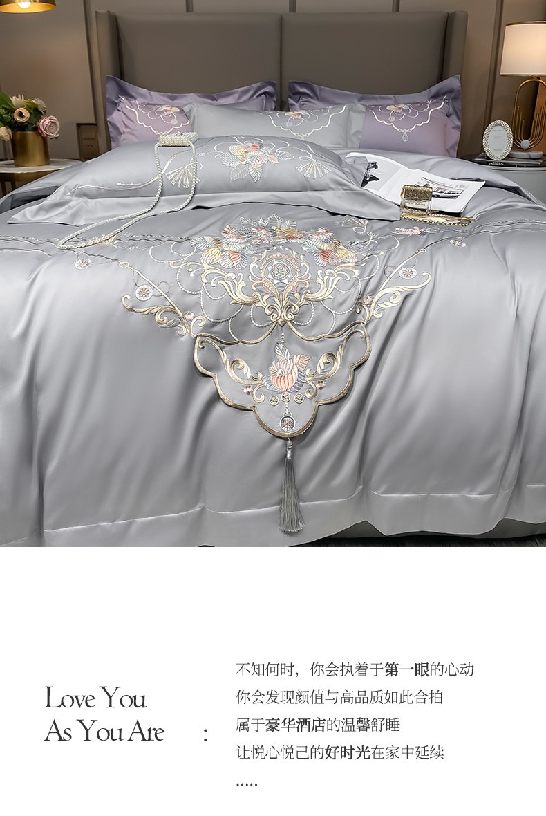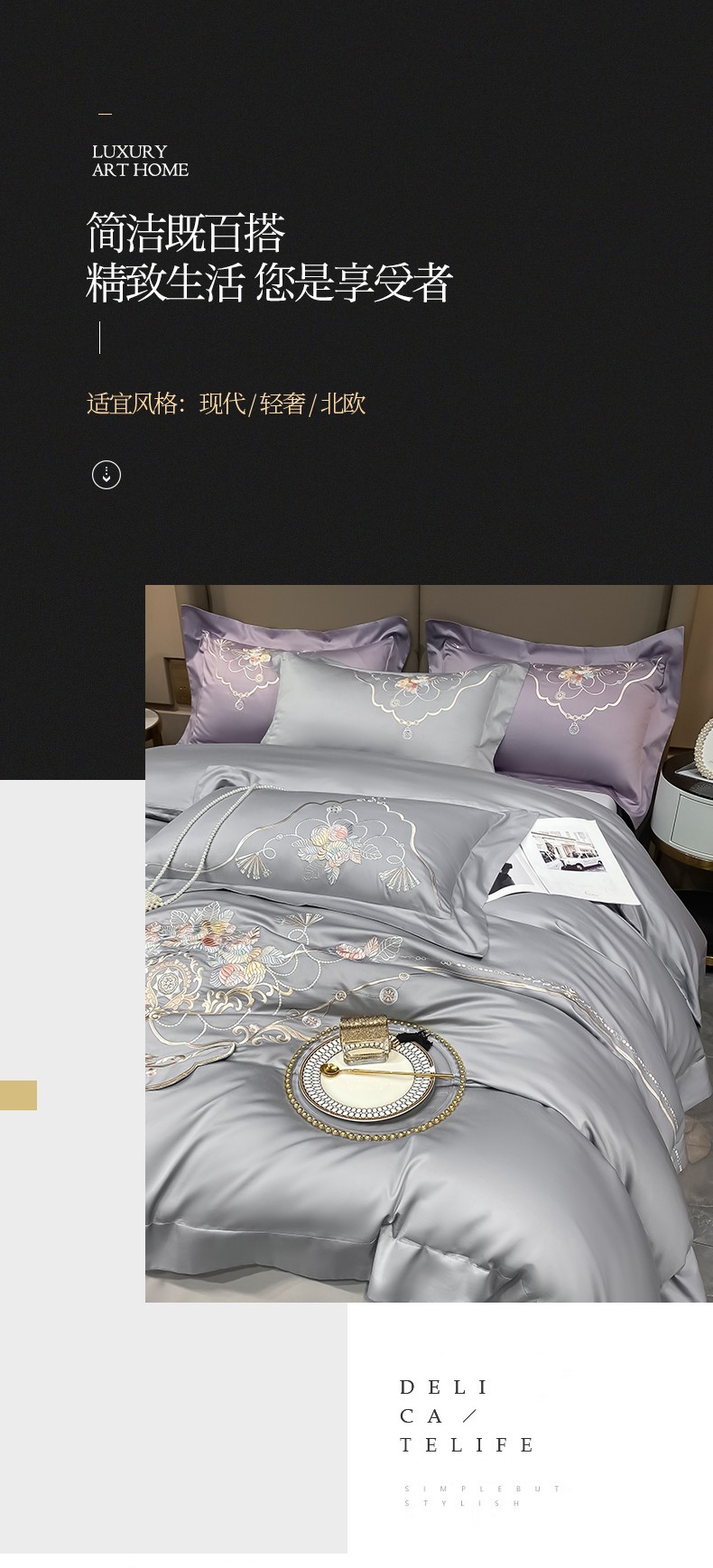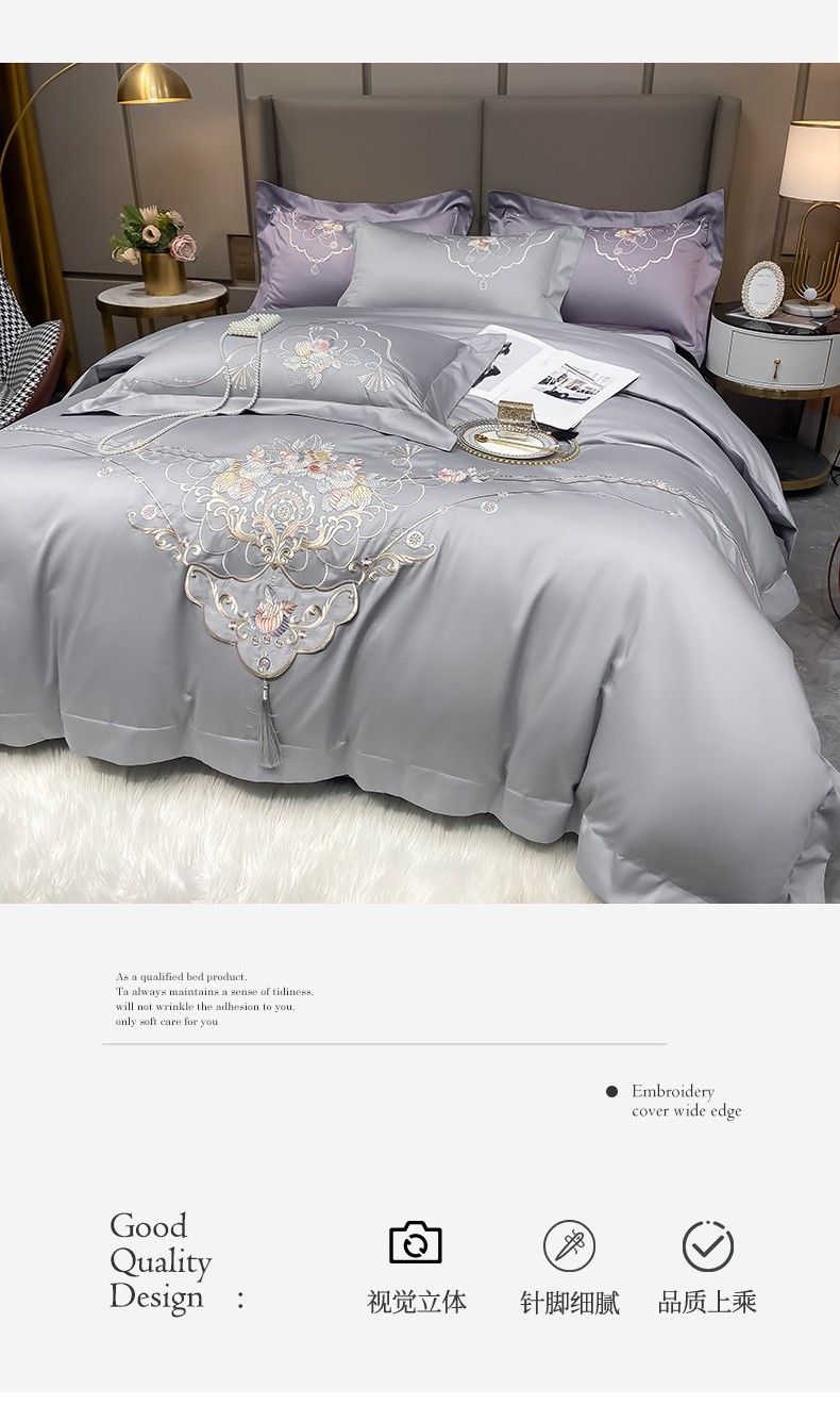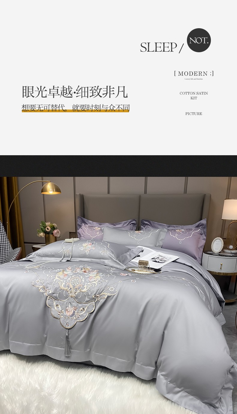 商品名称:美娘阁2023新款长绒棉刺绣居家款四件套 花迷宝贝(灰色)