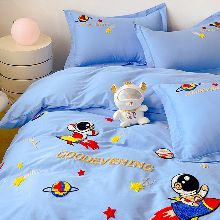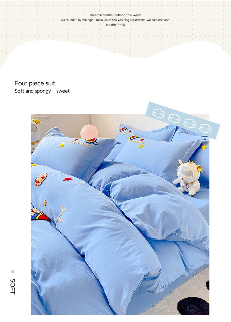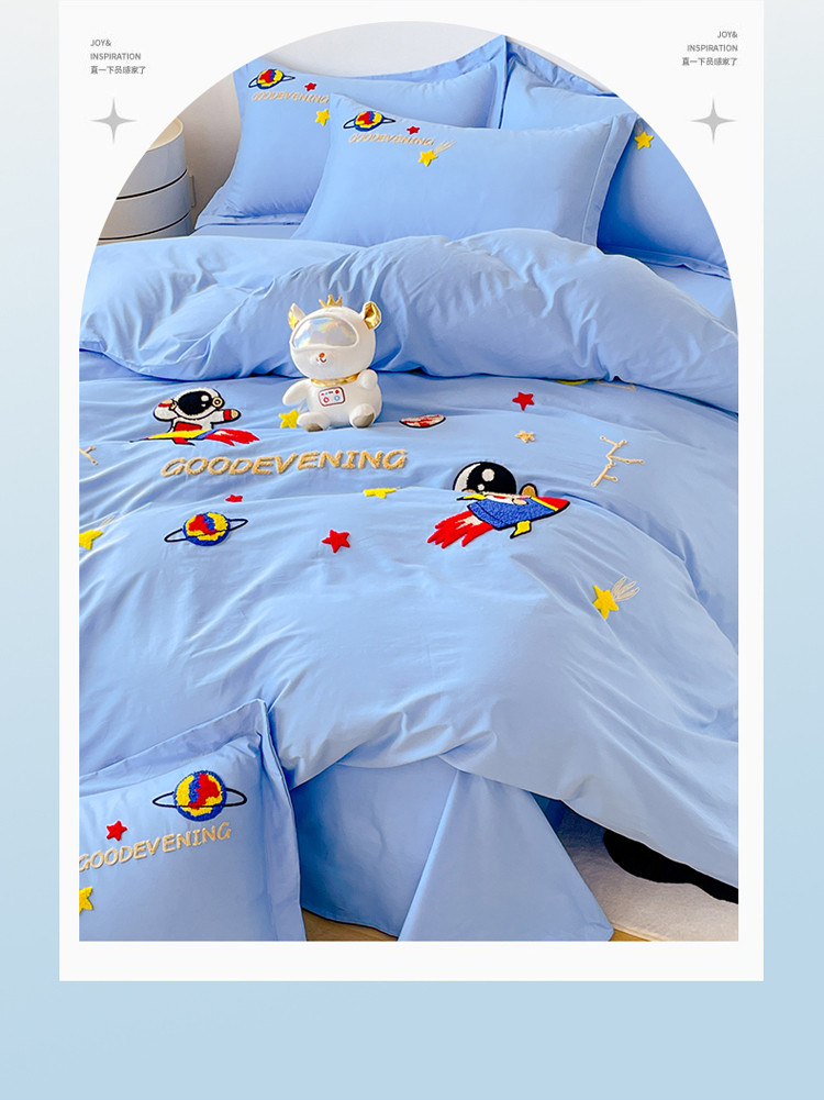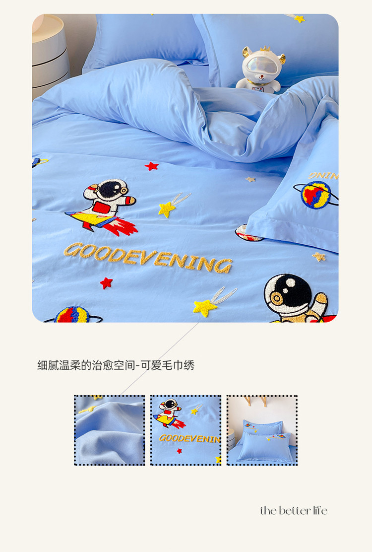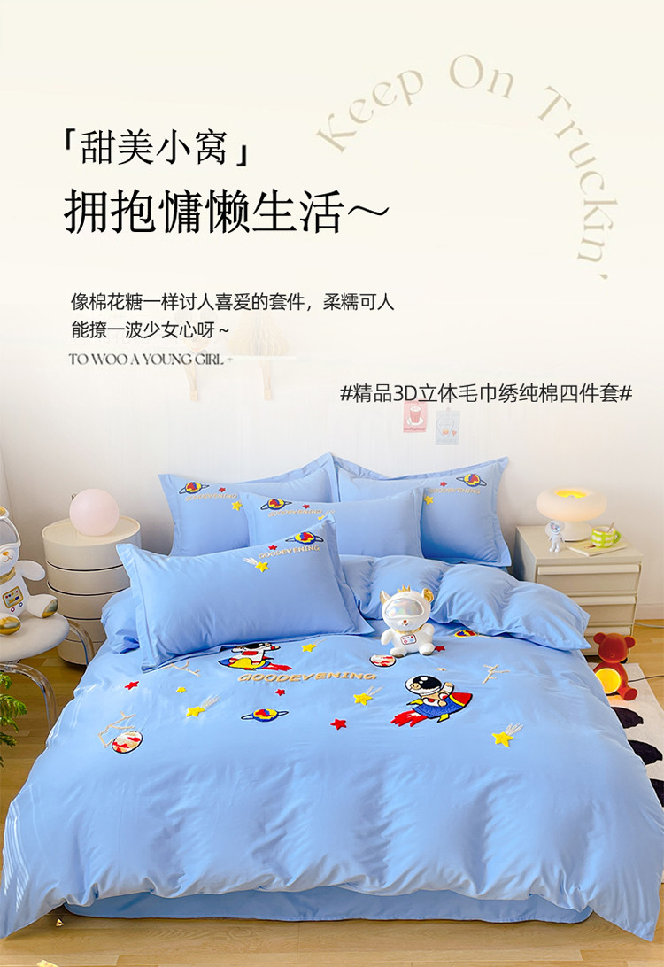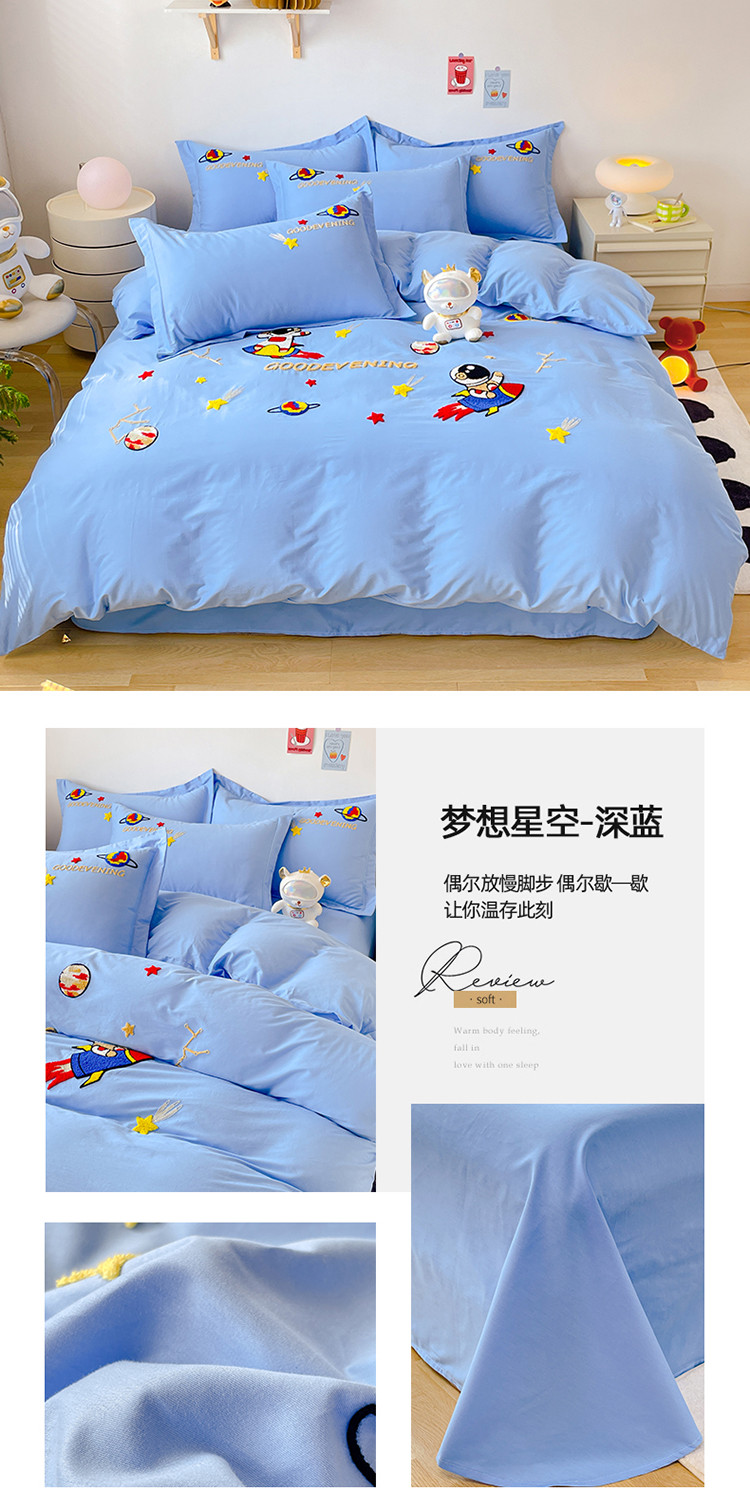 商品名称:金窝窝家纺2024新款活性精品纯棉毛巾绣四件套-梦想星空 梦想星空-深蓝
