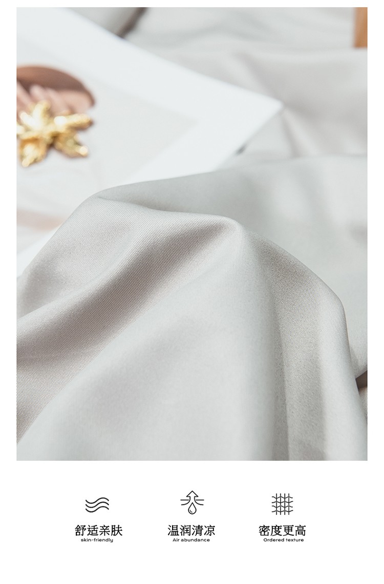 骏腾2023新款水洗冰丝夏被-终板山茶花5夏被套件 山茶-低度灰
