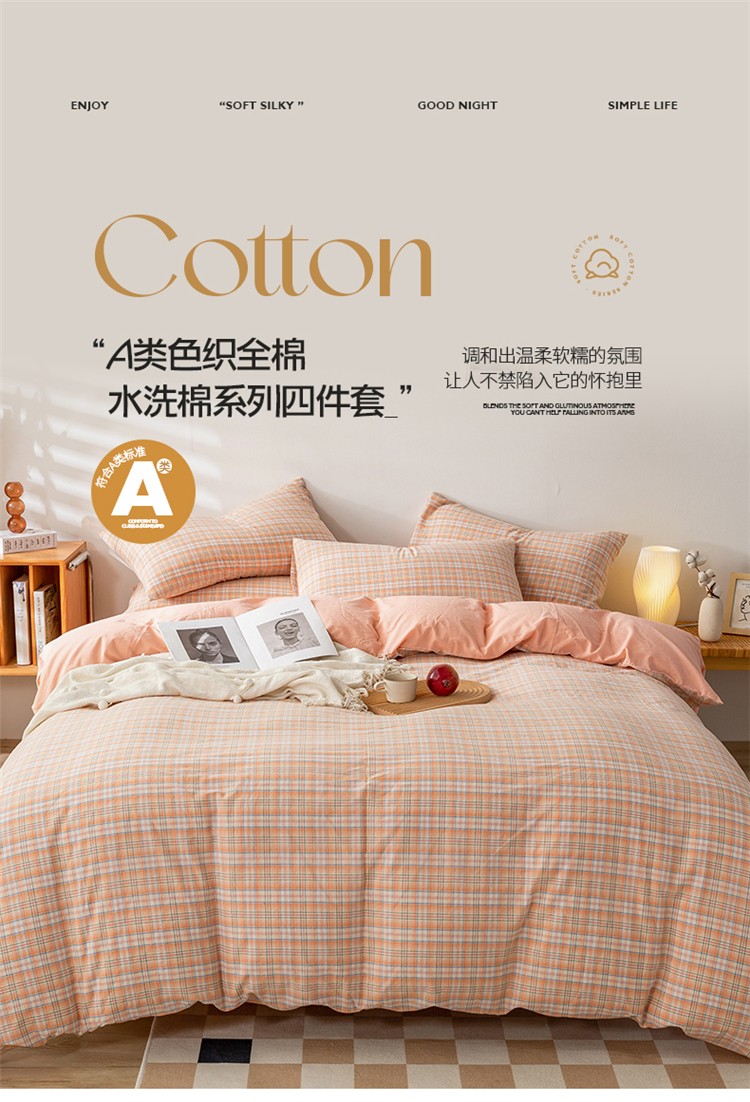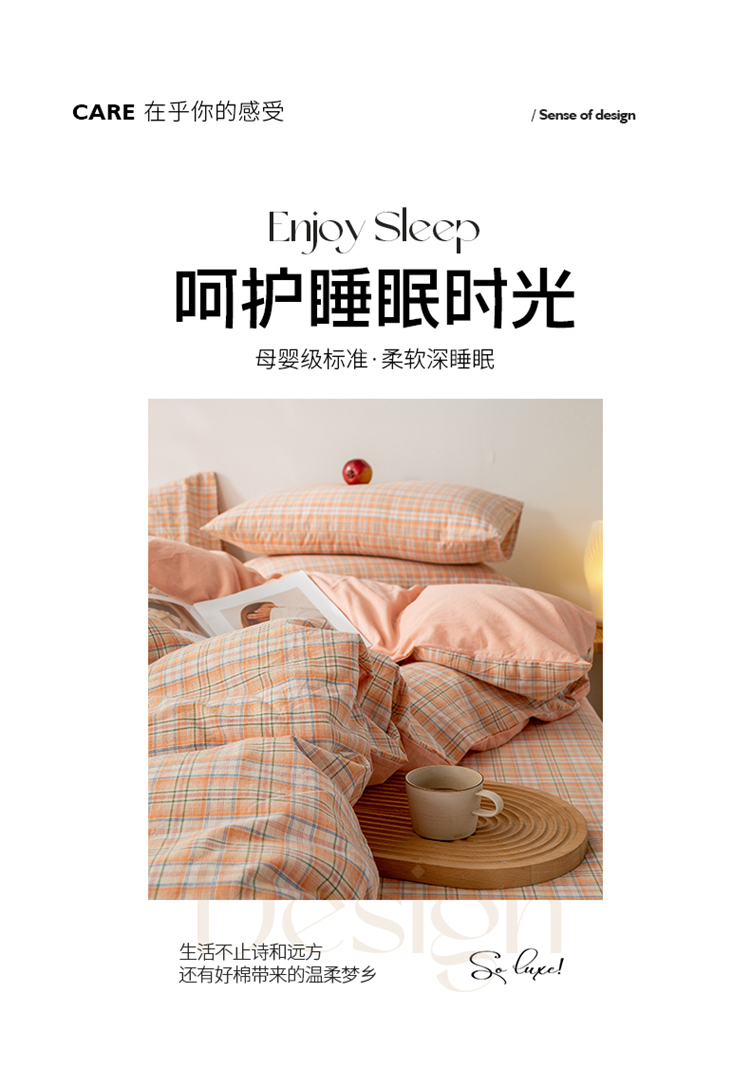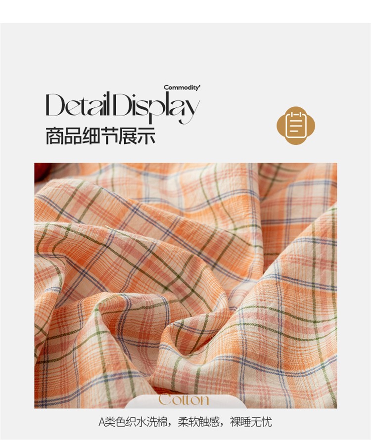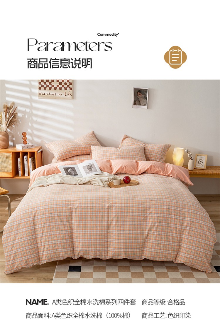 当前位置: 91家纺网 > 商品网购 > 床品套件 > 四件套 > 水洗棉四件套 > 九沐良品 新款A类色织水洗棉四件套 凯利桔
