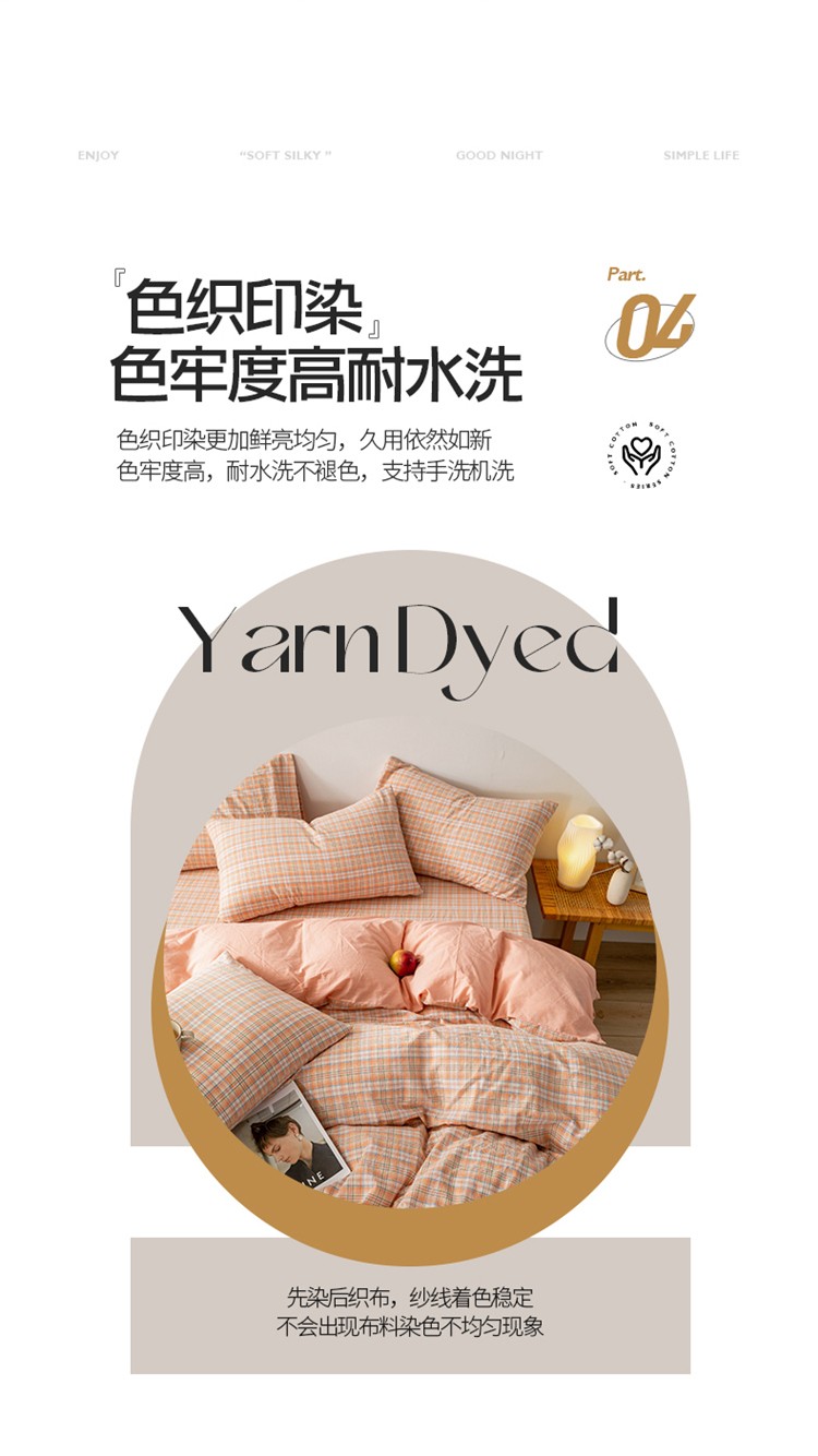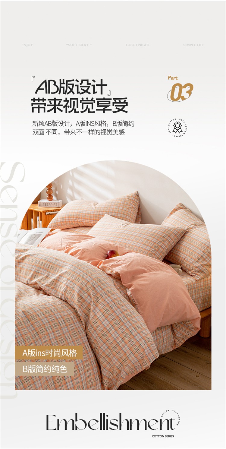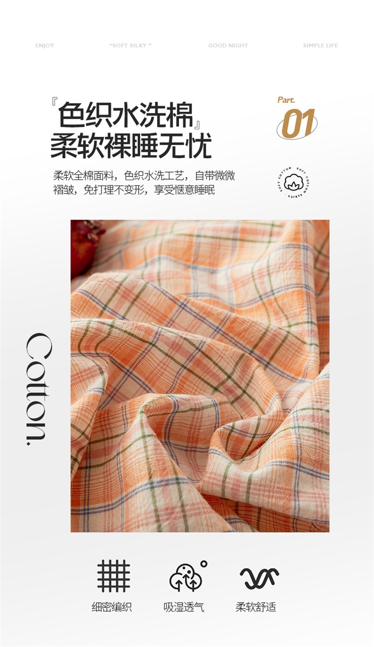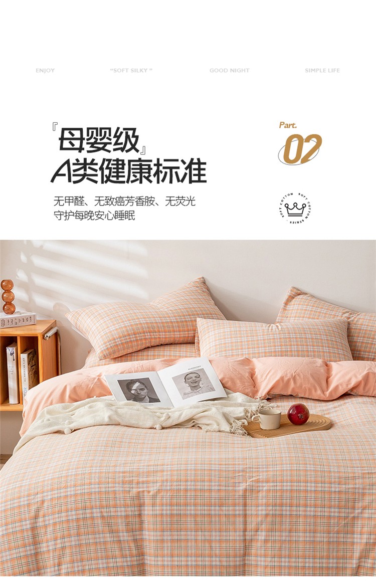 当前位置: 91家纺网 > 商品网购 > 床品套件 > 四件套 > 水洗棉四件套 > 九沐良品 新款A类色织水洗棉四件套 凯利桔