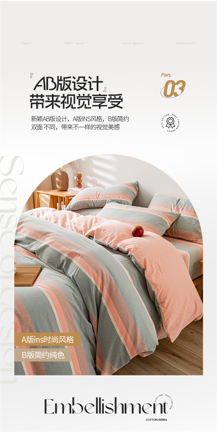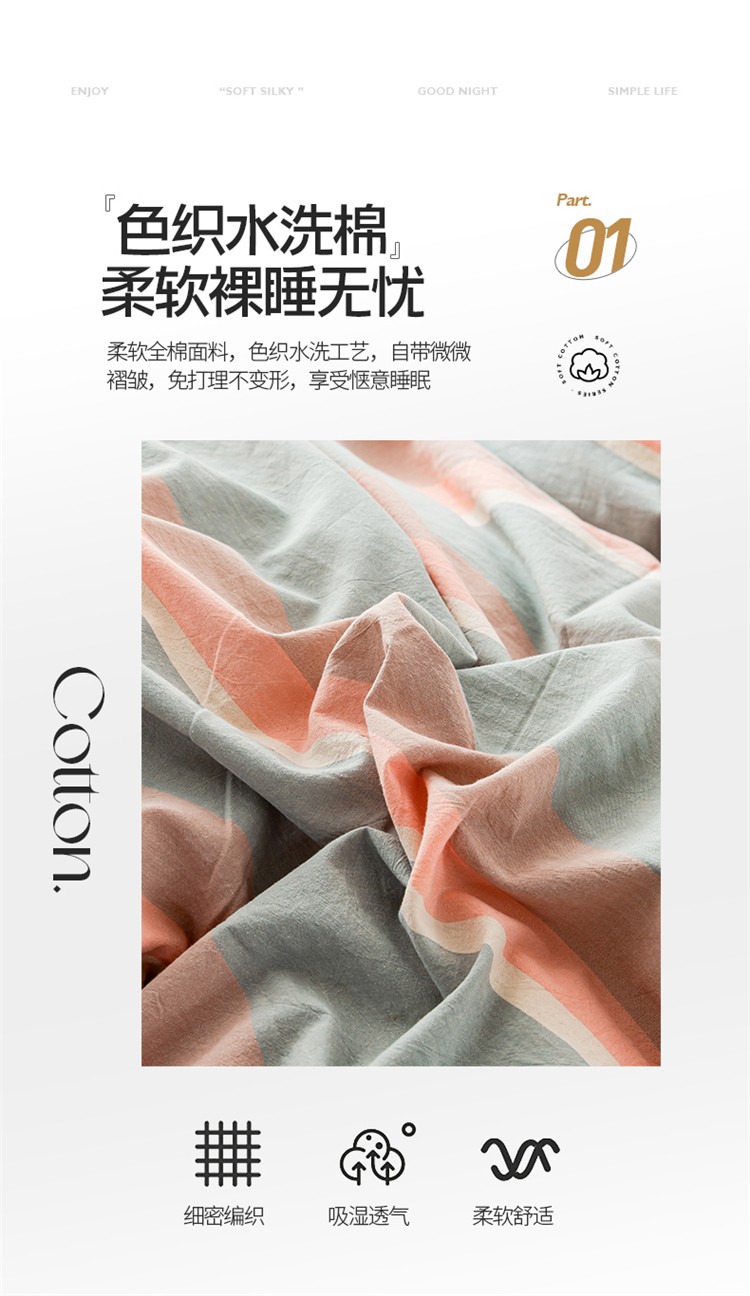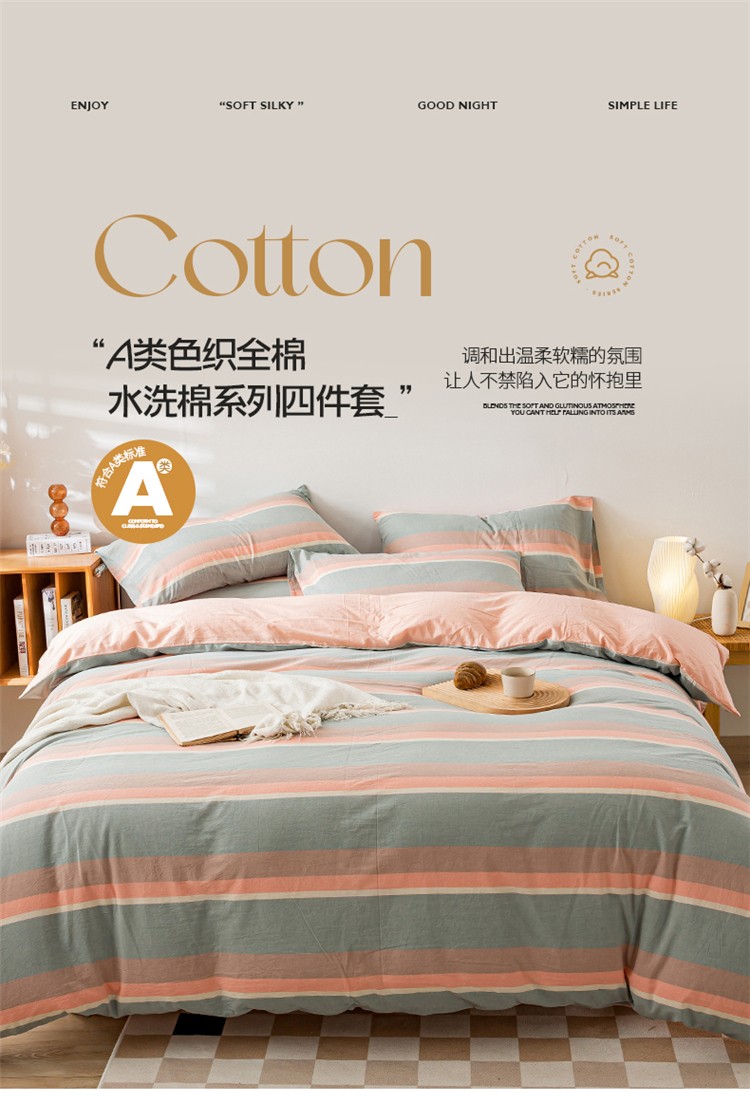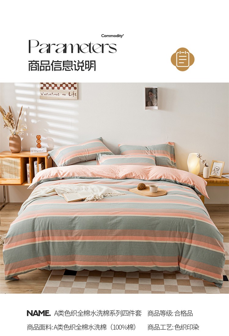 当前位置: 91家纺网 > 商品网购 > 床品套件 > 四件套 > 水洗棉四件套 > 九沐良品 新款A类色织水洗棉四件套 嫩绿卡其条