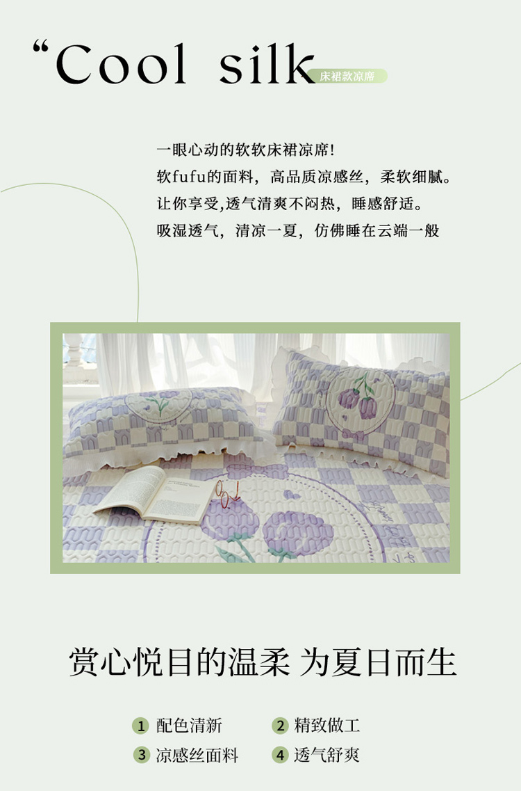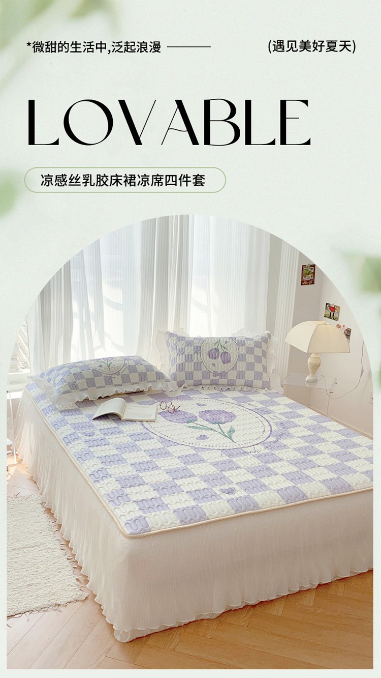 商品名称:慕澄 2023新款大版雪纺床裙款乳胶凉席系列 床裙款-郁金香