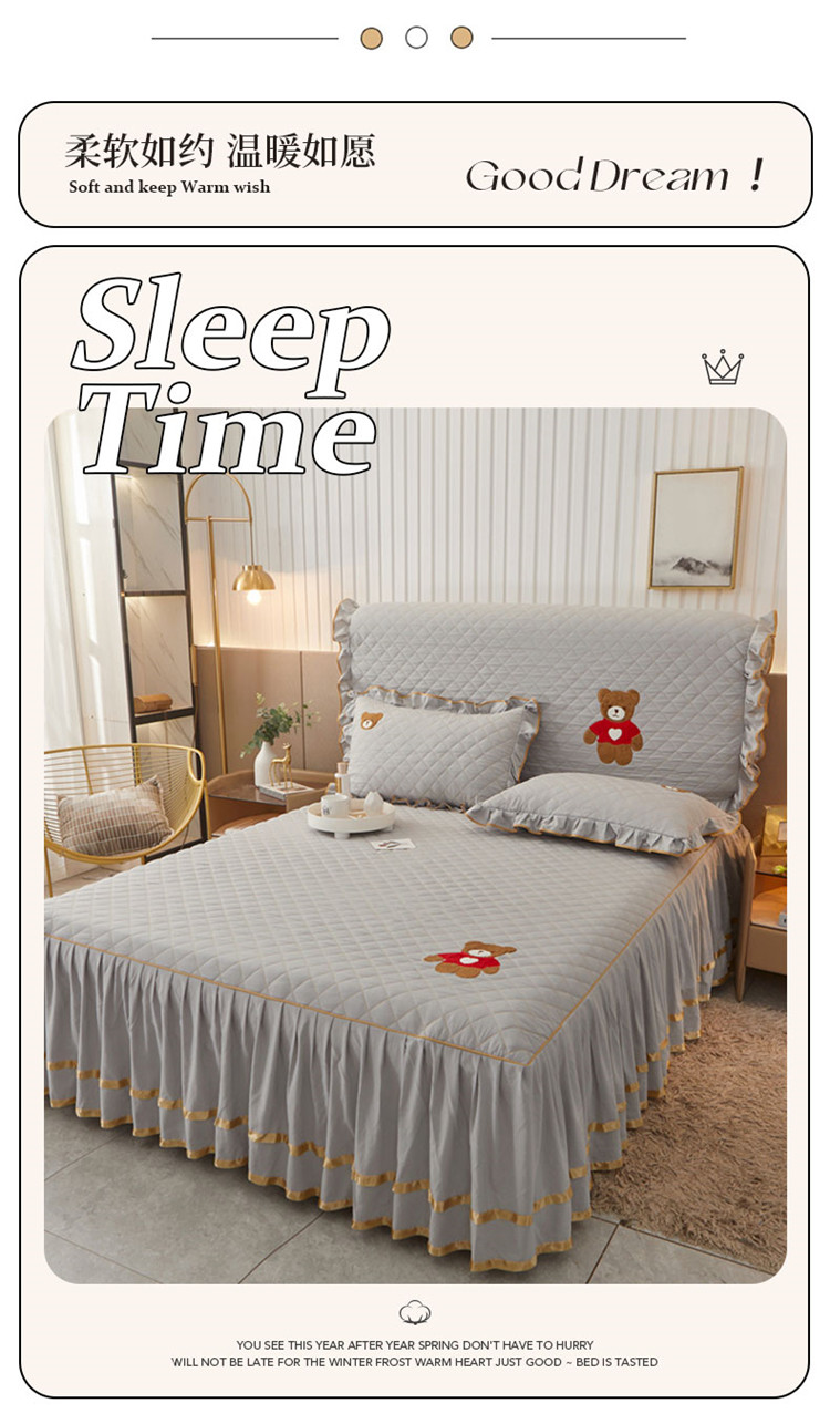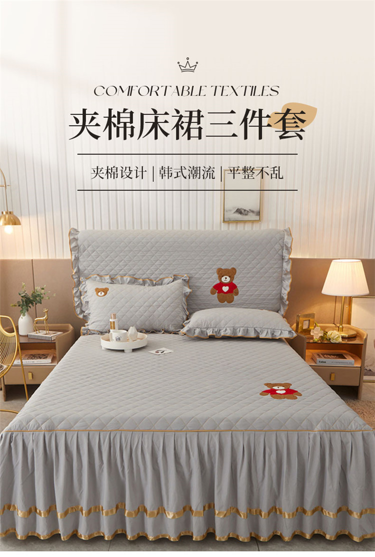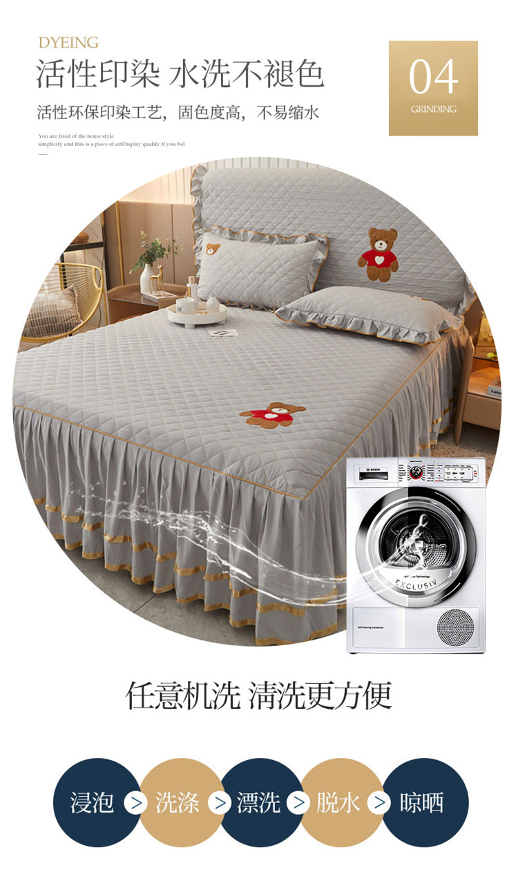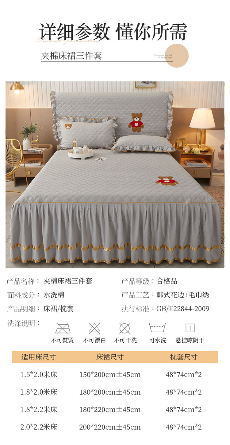 当前位置: 91家纺网 > 商品网购 > 床品套件 > 三件套 > 屹成家纺 2024年水洗棉毛巾绣款床裙三件套 银灰