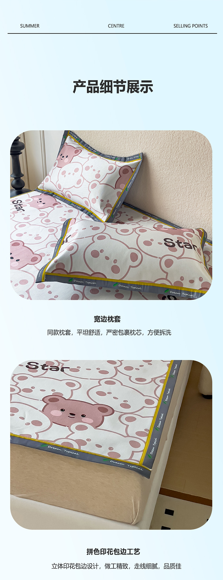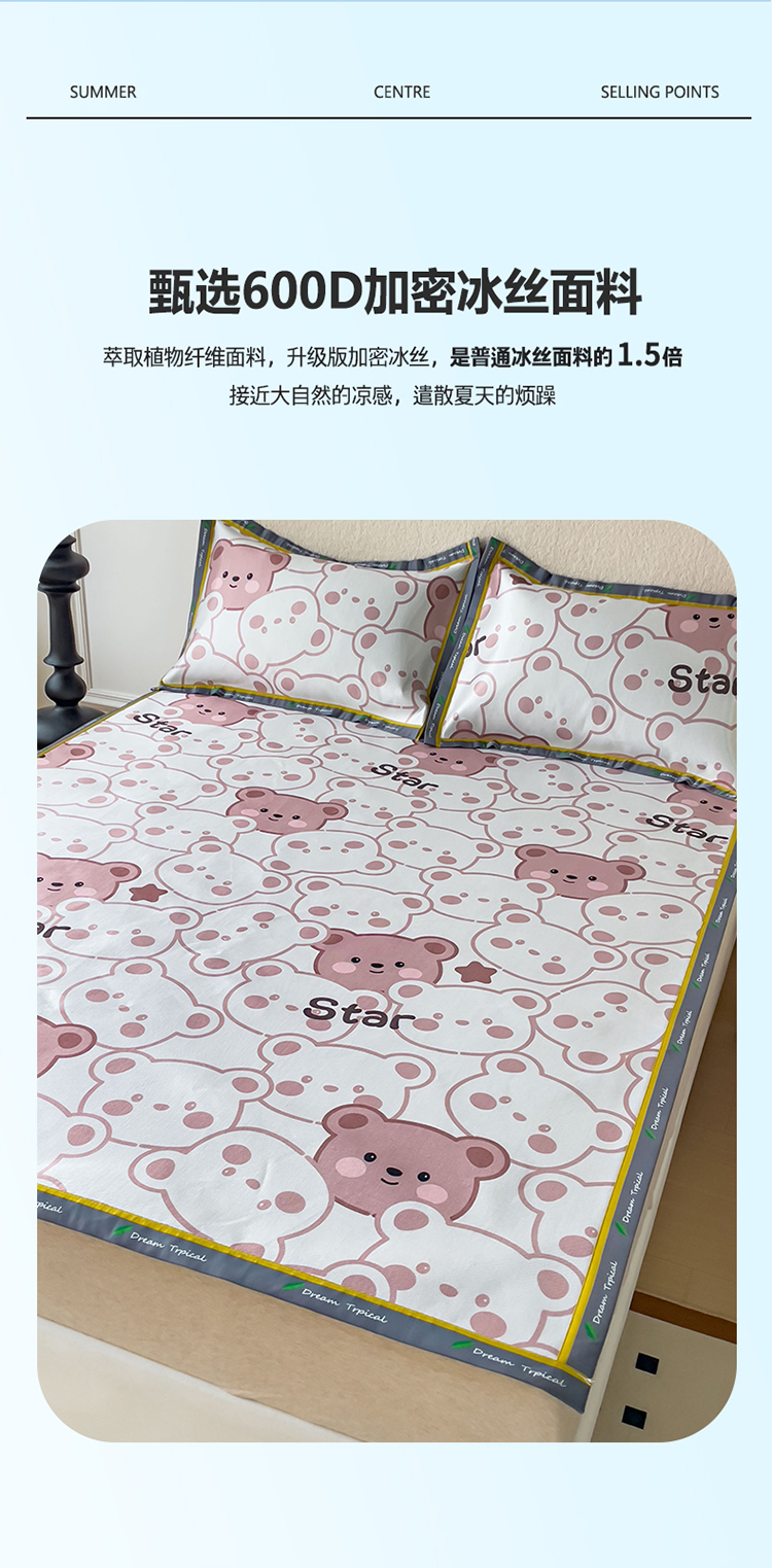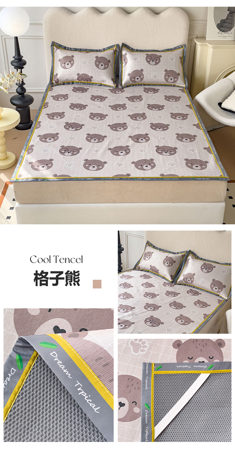 商品名称:宅部落 2023新款600D数码印花冰丝席 格子熊