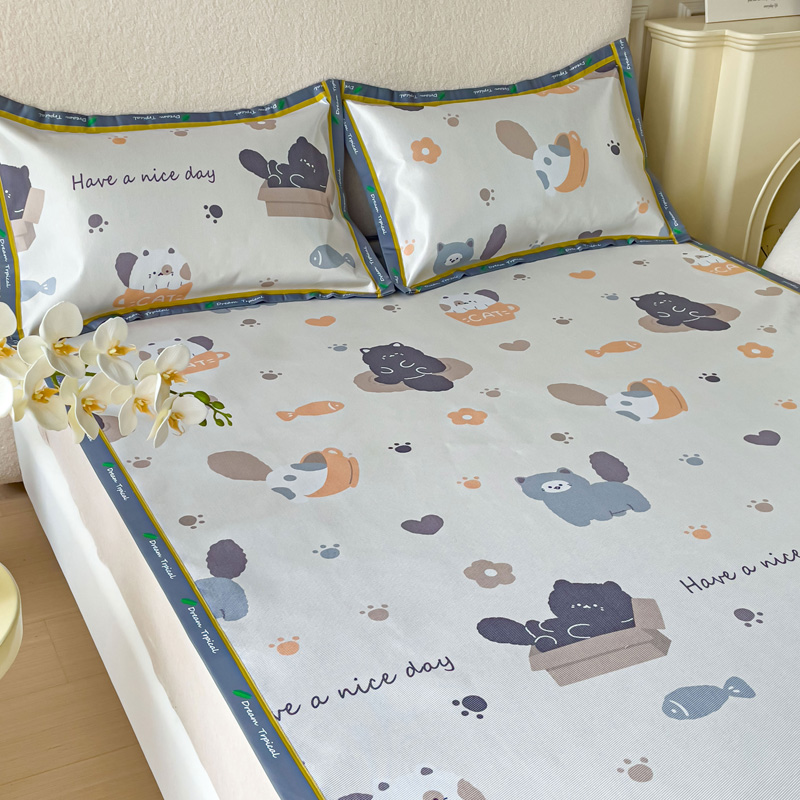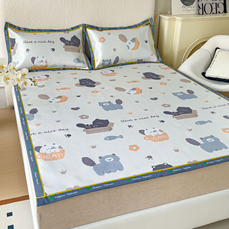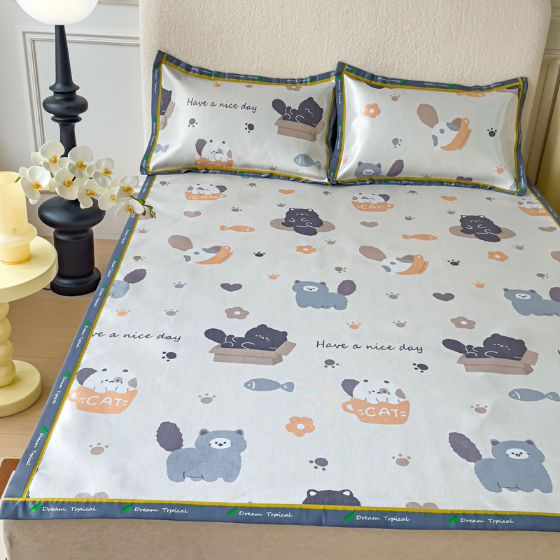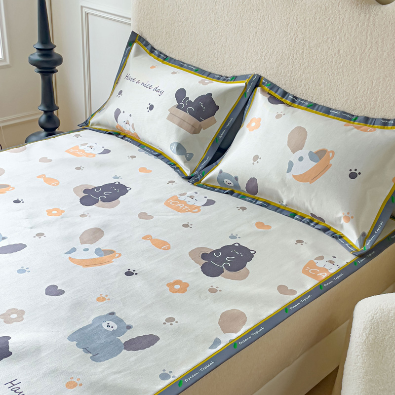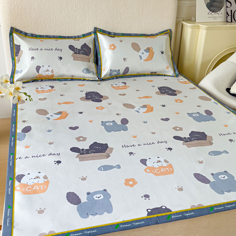 宅部落 2023新款600D数码印花冰丝席 小懒猫