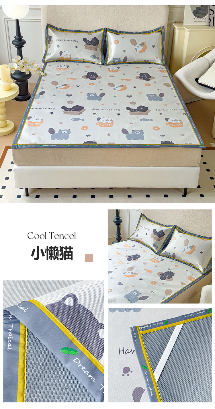 商品名称:宅部落 2023新款600D数码印花冰丝席 小懒猫
