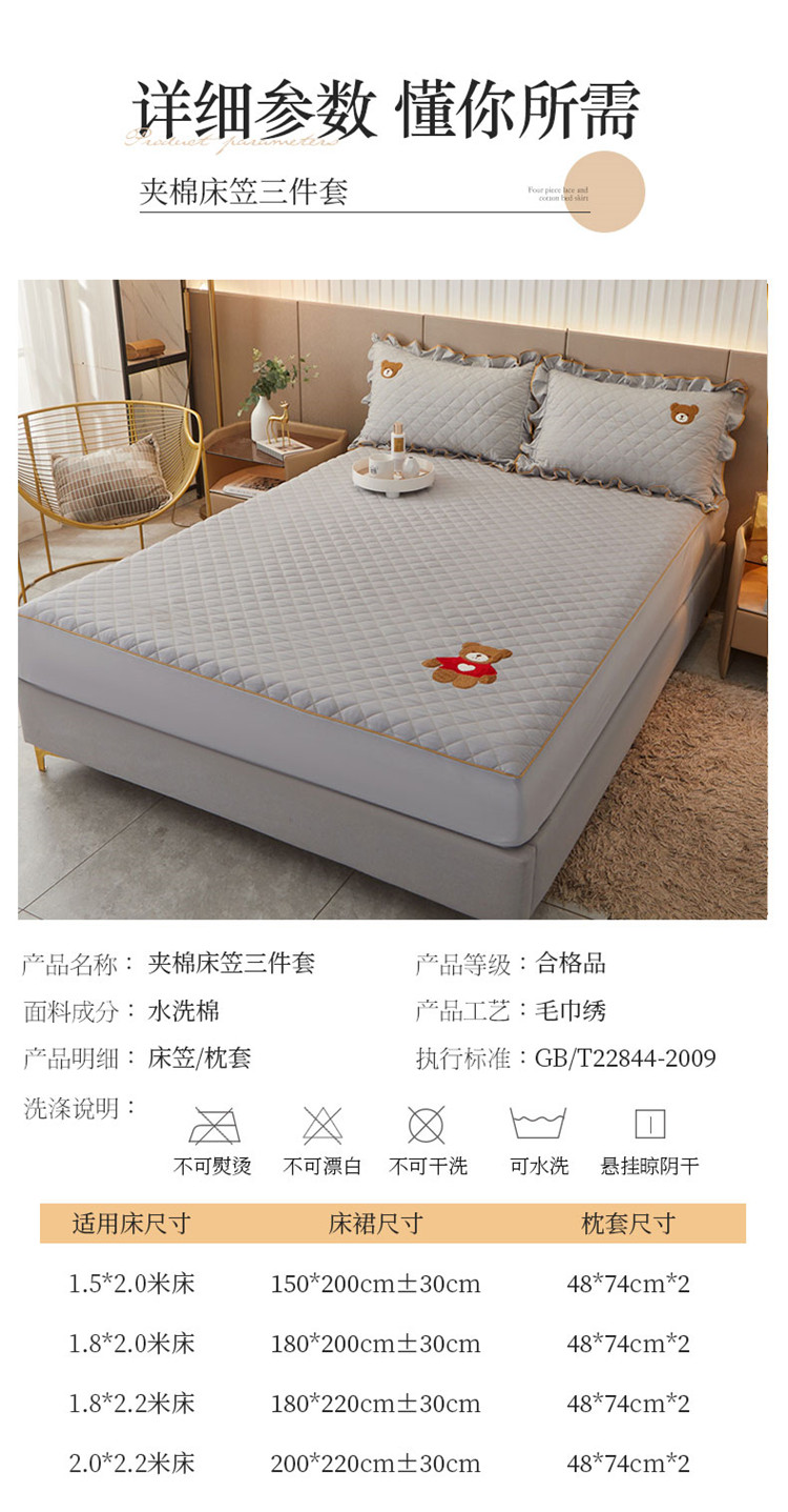 当前位置: 91家纺网 > 商品网购 > 床品套件 > 三件套 > 屹成家纺 2024年水洗棉毛巾绣款床笠三件套 银灰