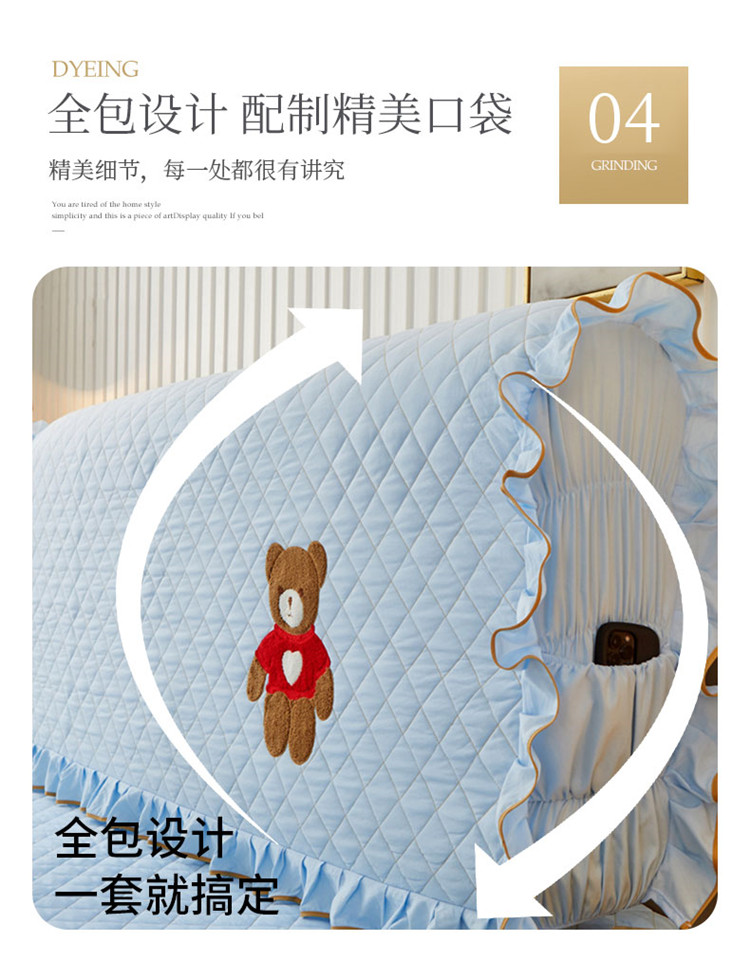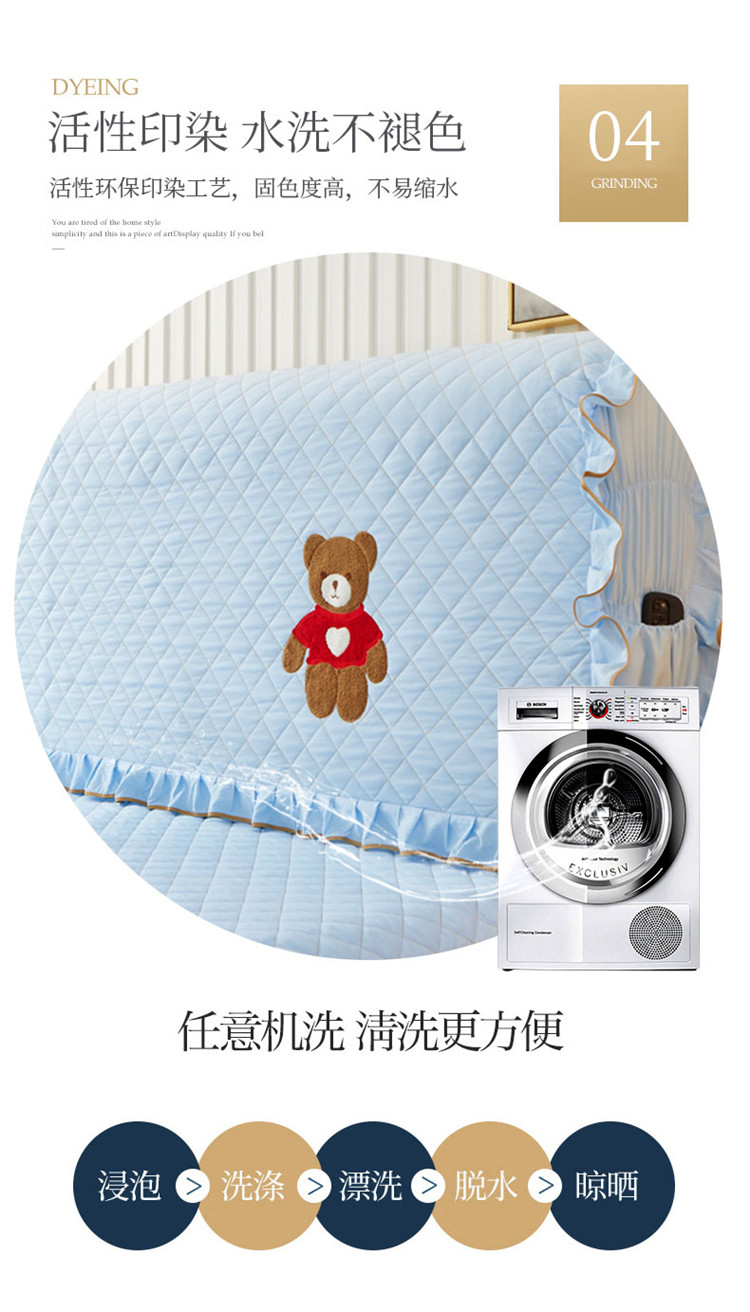 (总)屹成 2024新款水洗棉蕾丝四季款床笠床裙单品套件-床裙三件套,粉玉,豆沙,粉红,大红,橄榄绿,卡其,玫红,浅紫,水绿,天蓝,银灰