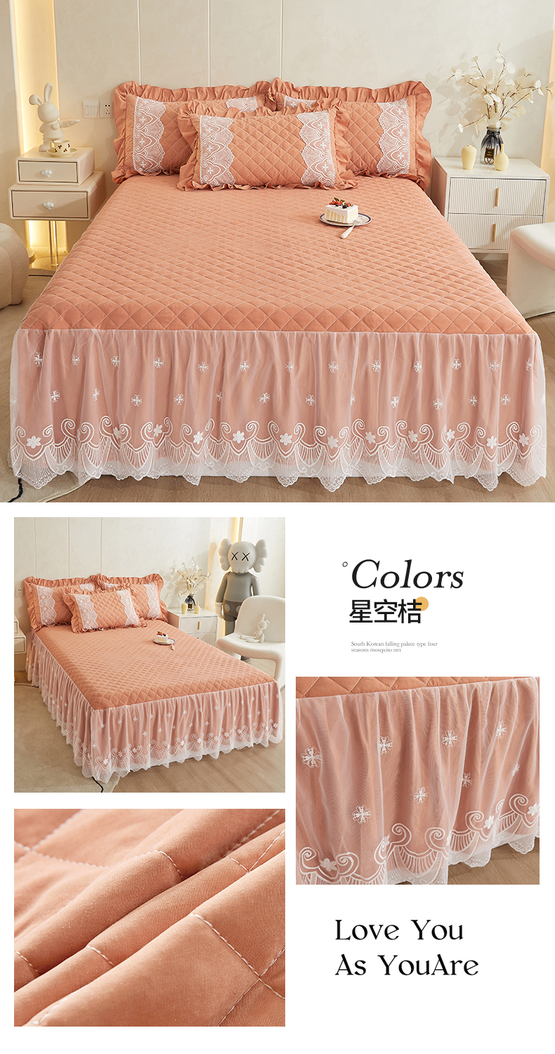 网红馆 2025新款亲肤蕾丝床裙-梦想生活 星空桔